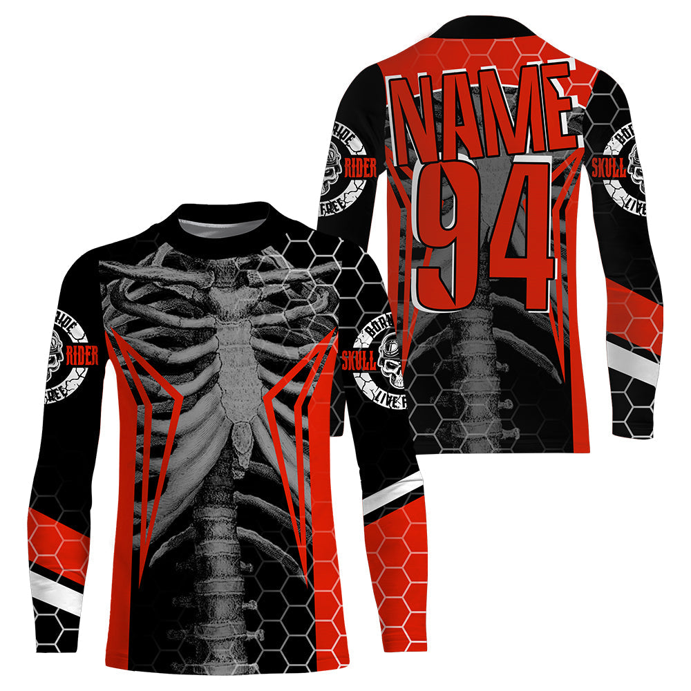 Personalized Racing Jersey UPF30+, Cool Bone Motorcycle Motocross Off-Road Riders - Red| NMS1457