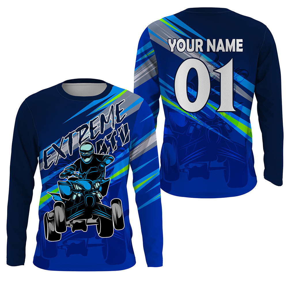 Custom ATV Motocross Jersey UPF30+ Blue Quad Bike Shirt Adult Youth Off-road Racing NMS1346