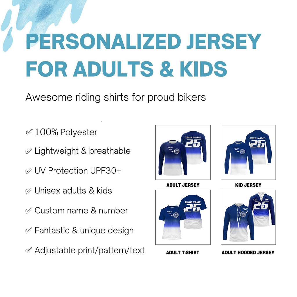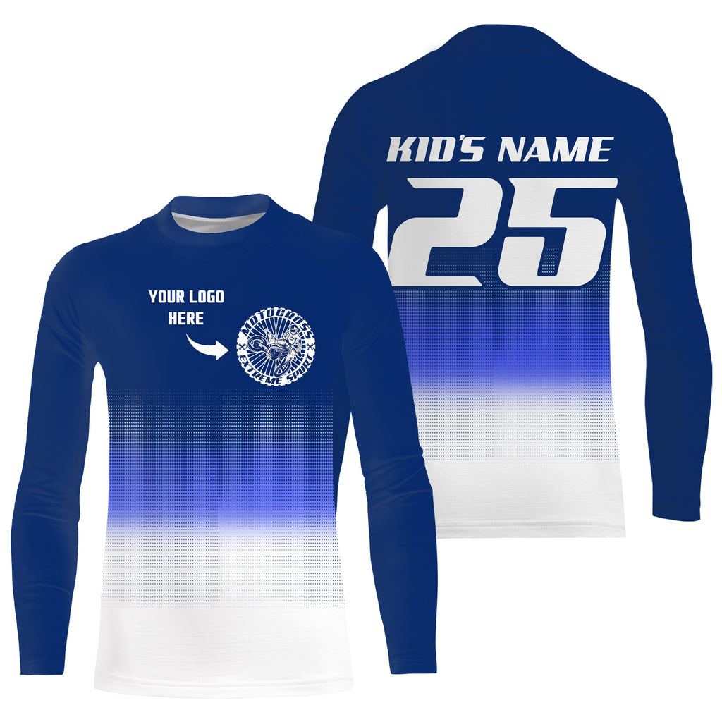 Custom logo motorcycle racing jersey UPF30+ adult kid blue motocross off-Road dirtbike riders NMS1019