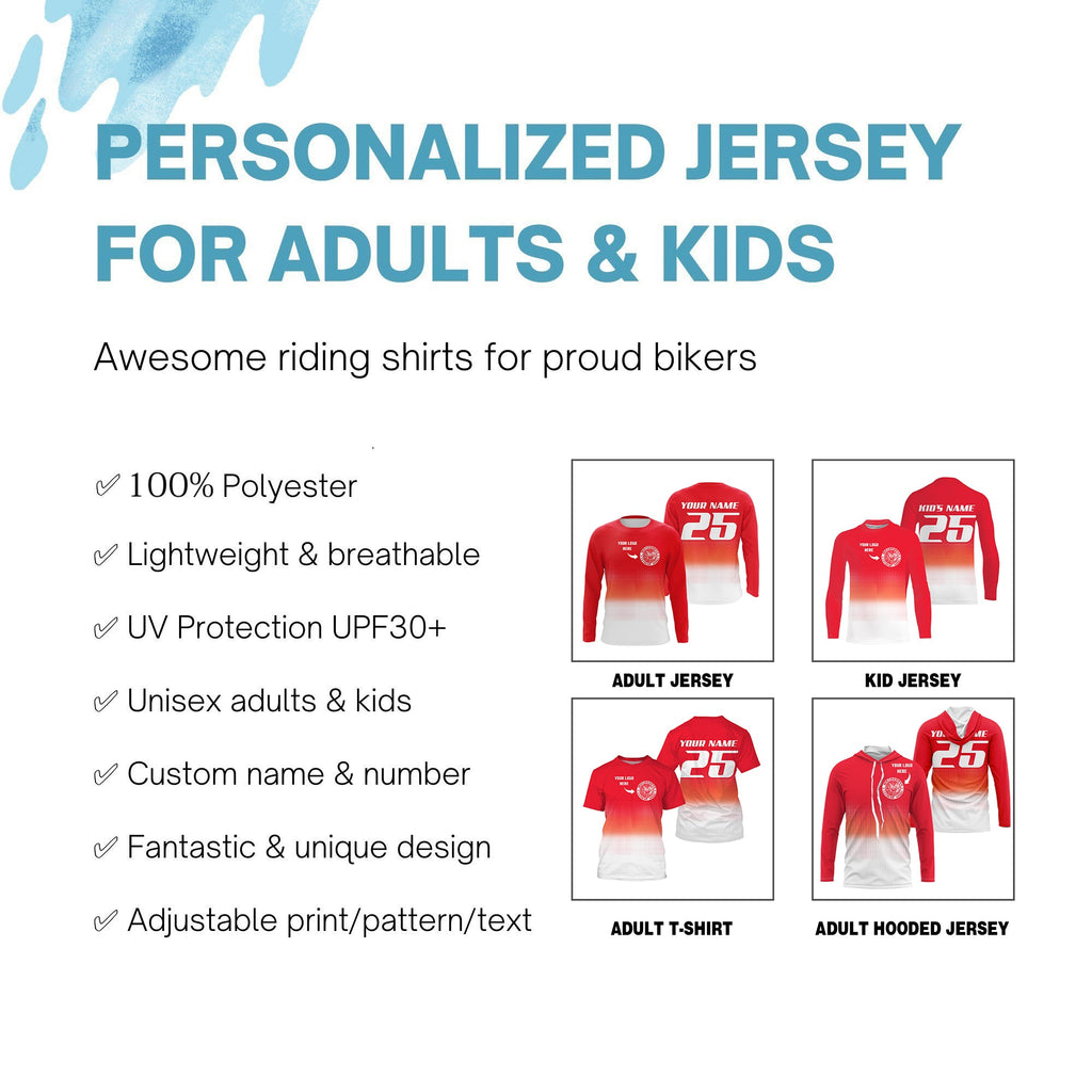 Custom logo motorcycle racing jersey UPF30+ adult kid orange motocross off-Road dirtbike riders NMS1018