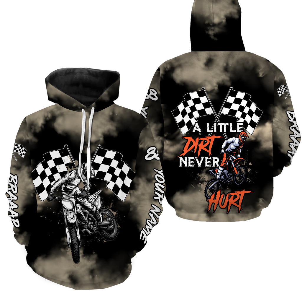Dirt Bike Personalized Long Sleeves, Hoodie, A Little Dirt Never Hurt, Motocross Off-road Racing Shirt| NMS288