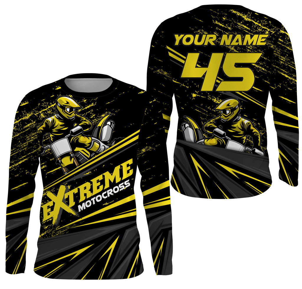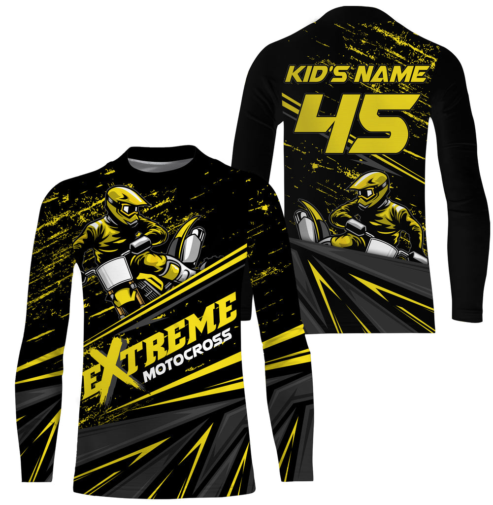 Extreme Motocross Personalized Jersey UV Protect, UPF 30+ Dirt Bike Youth Long Sleeves MX Racewear| NMS370