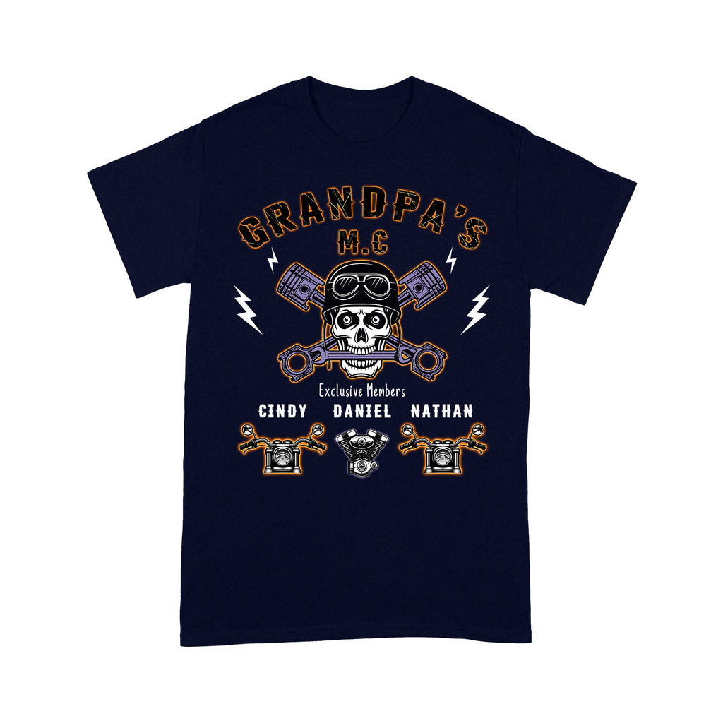 Grandpa's Motorcycle Club- Custom Kids Name, Biker Men T-shirt, Cool Tee for Cruiser Rider Papa| NMS36 A01