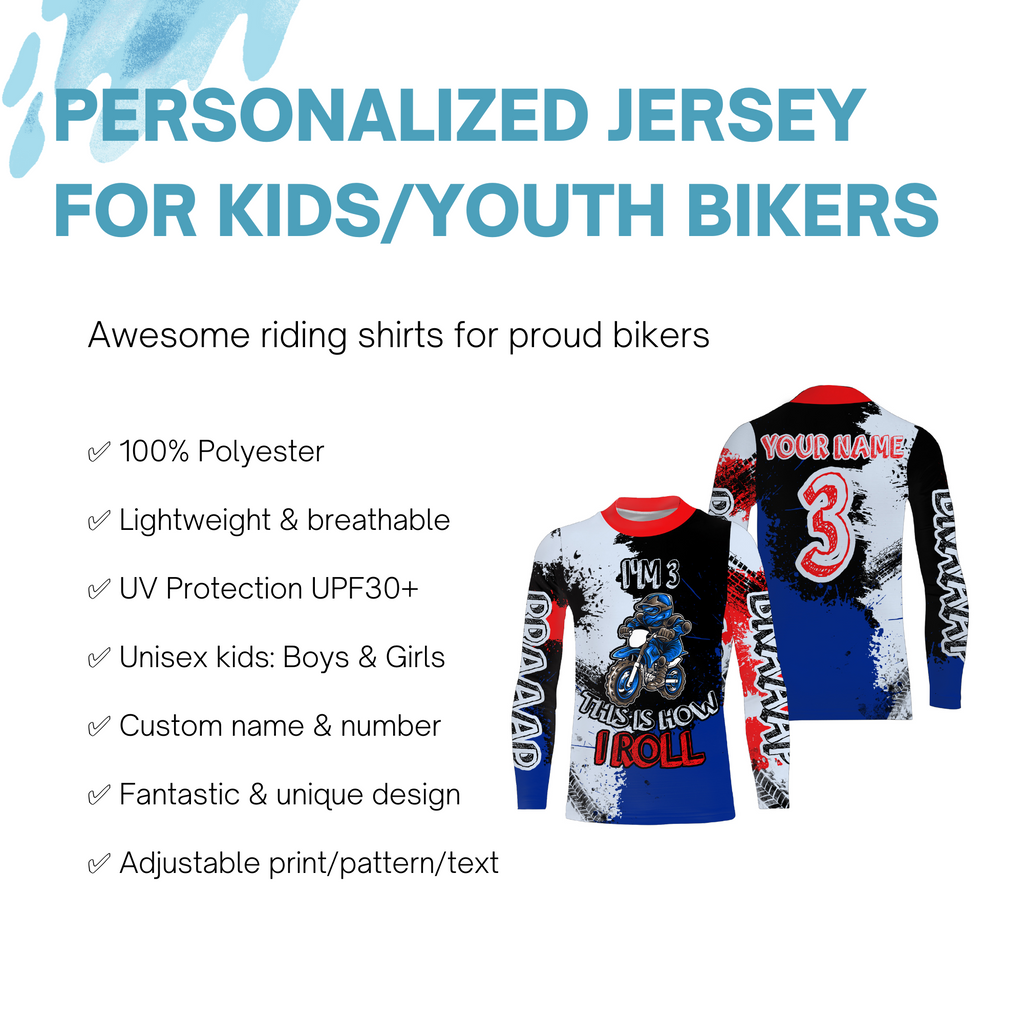 Kids custom motocross jersey UPF30+ This Is How I Roll dirt bike boys girls MX racing long sleeves NMS1070