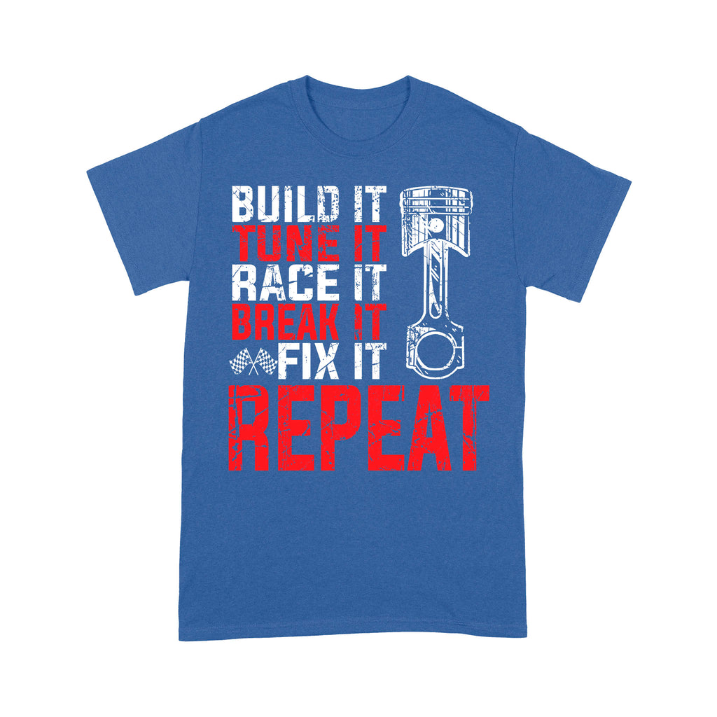 Specially designed for proud bikers. Cool quote: "Built It - Tune It - Race It - Break It - Fix It - Repeat". Let's wear this awesome shirt and be bold.