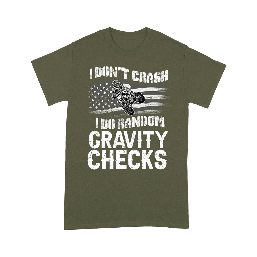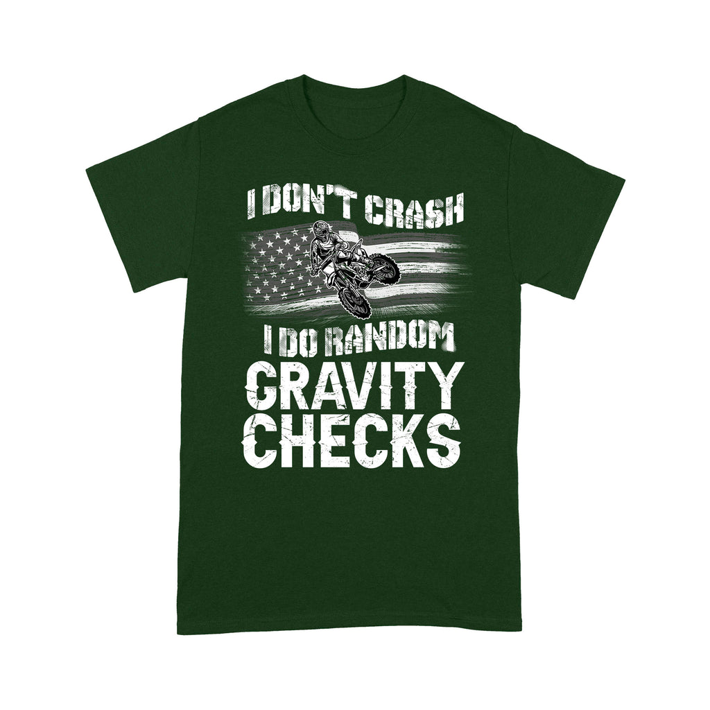 Motorcycle Men T-shirt - I Don't Crash I Do Random Gravity Checks, American Flag Riding Tee Motocross Dirt Bike| NMS113 A01