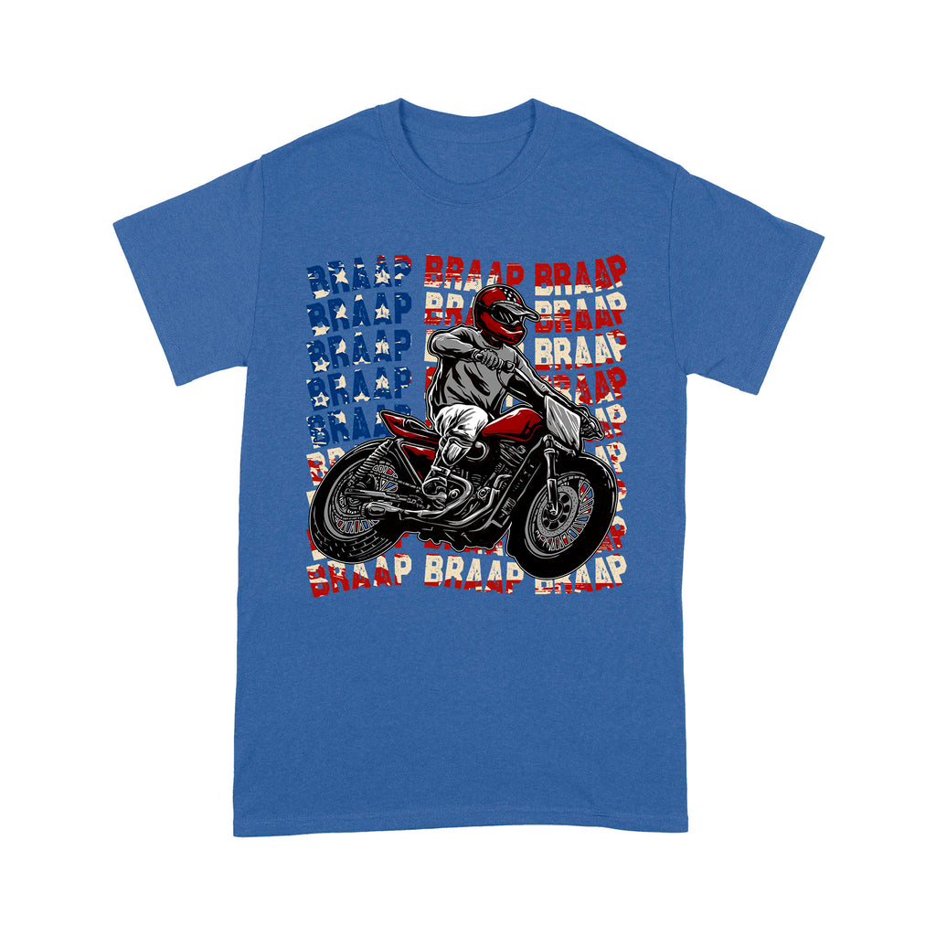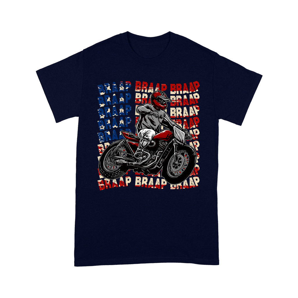 Patriotic Motorcycle Men T-shirt - Braap American Flag Biker Tee - Cool Motocross Racing Shirt| NMS252 A01