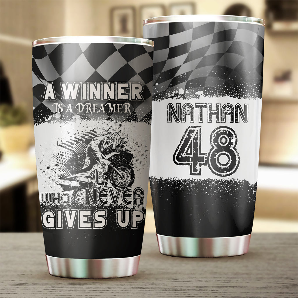 Personalized Biker Tumbler - Never Give Up, Motorcycle Tumbler Off-road Dirt Bike Rider Drinkware| NMS380
