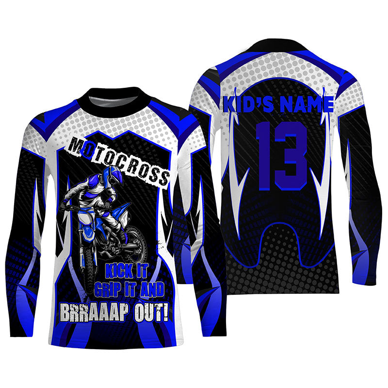 Personalized Blue Motocross Jersey UPF30+ Brap Dirt Bike MX Racing Off-Road Long Sleeves NMS1240
