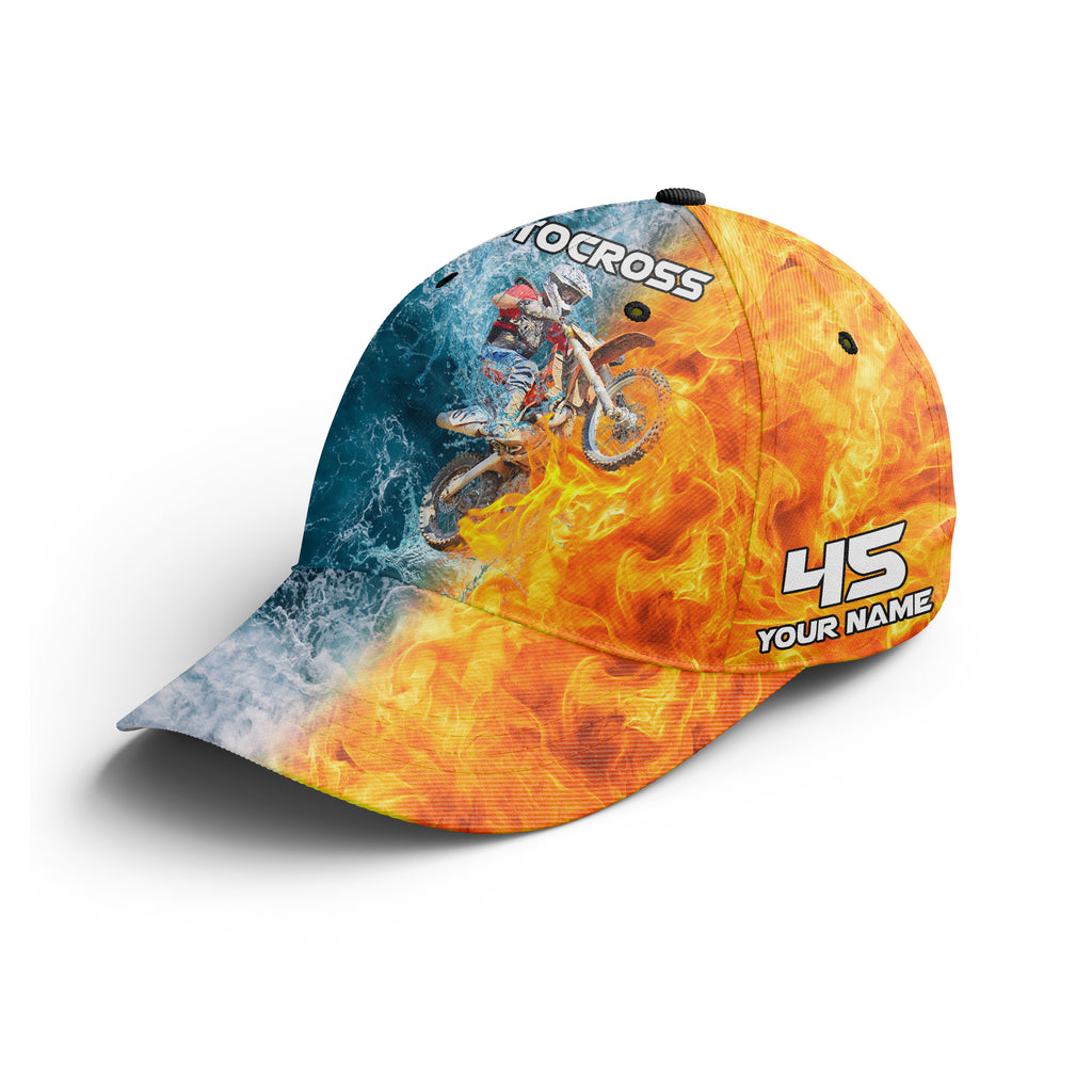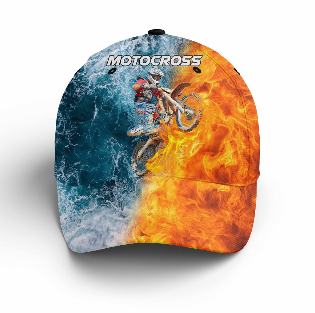 Personalized Motocross Cap - 3D Fire&Water Blend BWB Hat for Bikers, Off-road Riders, Motorcycle Lovers NMS375