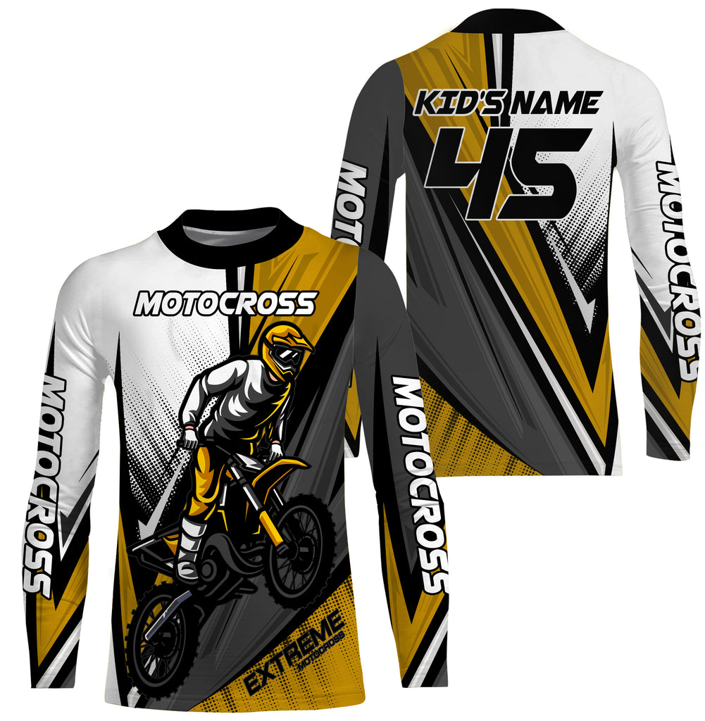 Personalized Motocross Jersey UPF 30+, Dirt Bike Motorcycle Off-Road Racing Long Sleeves- Yellow| NMS269
