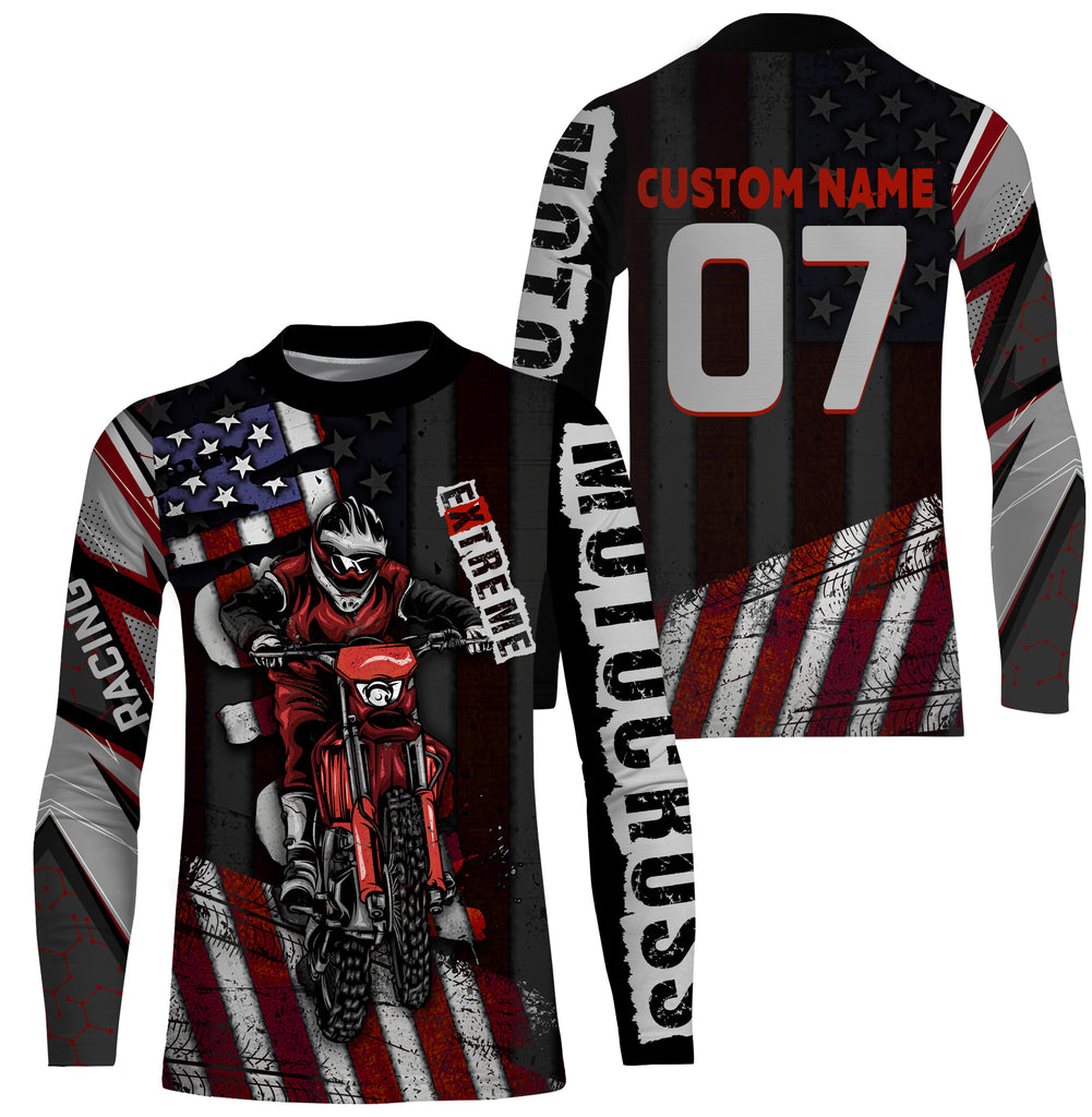 Personalized Motocross Jersey UPF30+, American Flag Dirt Bike Racing Shirt, Off-Road Rider Racewear| NMS400