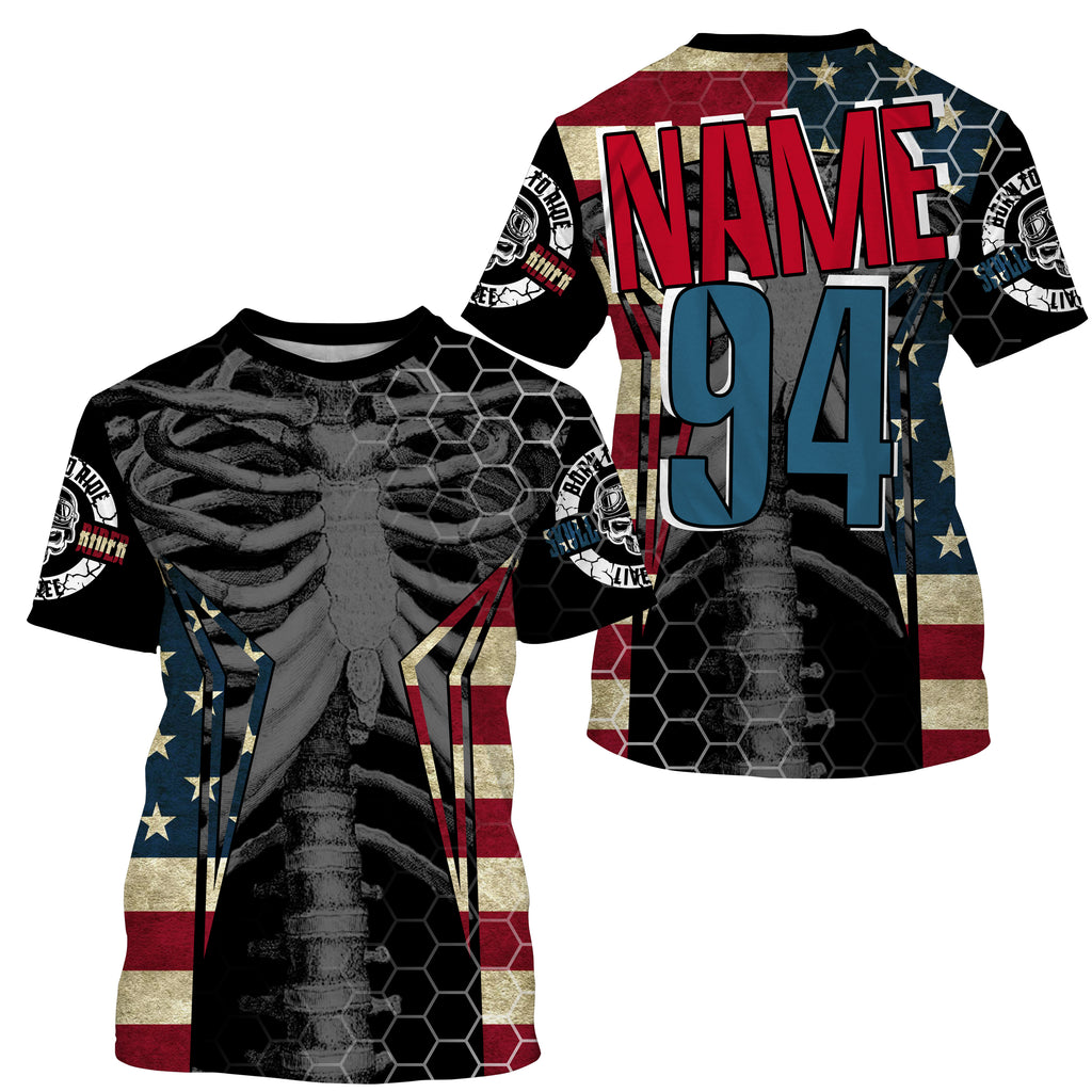 Personalized Racing Jersey UPF30+ Patriotic Chest Bone Motorcycle Motocross Off-Road Riders Racewear| NMS725