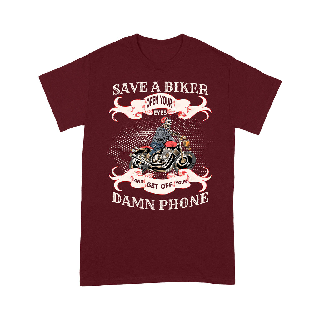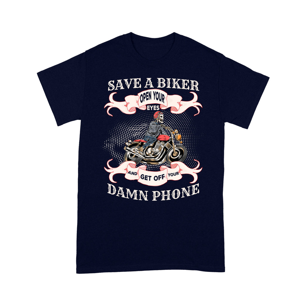 Save A Biker Open Your Eyes Get Off Your Phone - Motorcycle Men T-shirt, Cool Skeleton Tee for Rider, Cruiser| NMS23 A01