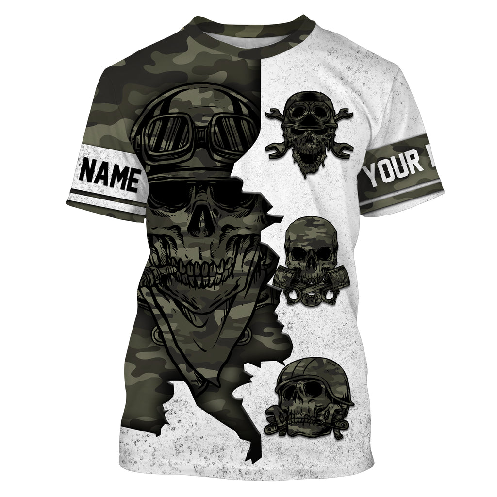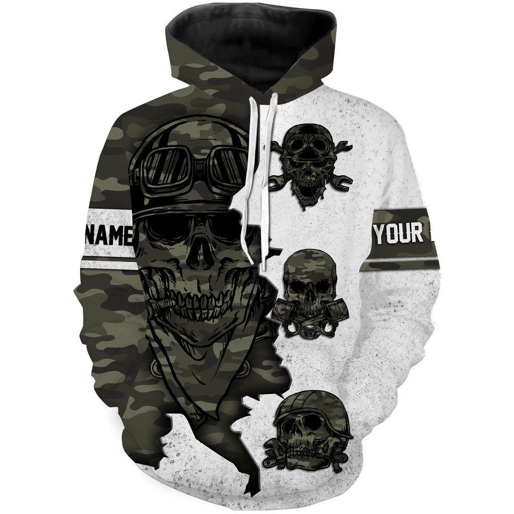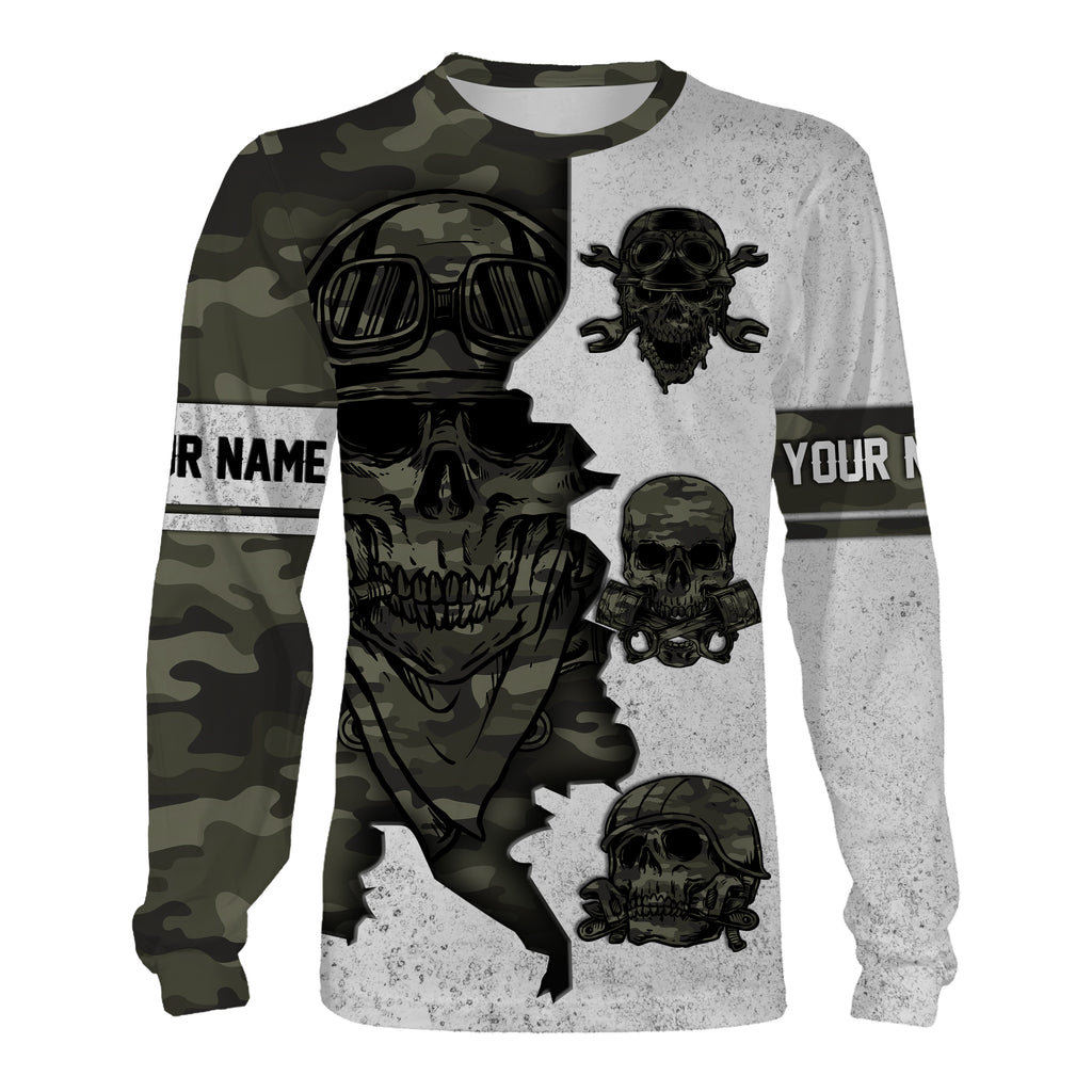 Skull Biker Personalized Long Sleeves Hoodie T-shirt, Camo Print Off-road Racing Motorcycle Shirt| NMS306