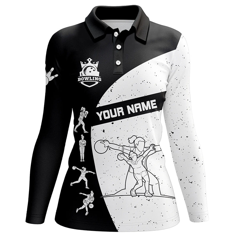 Black and white Bowling polo shirts for women custom Bowling Team League Shirt bowl gifts for ladies NQS6211