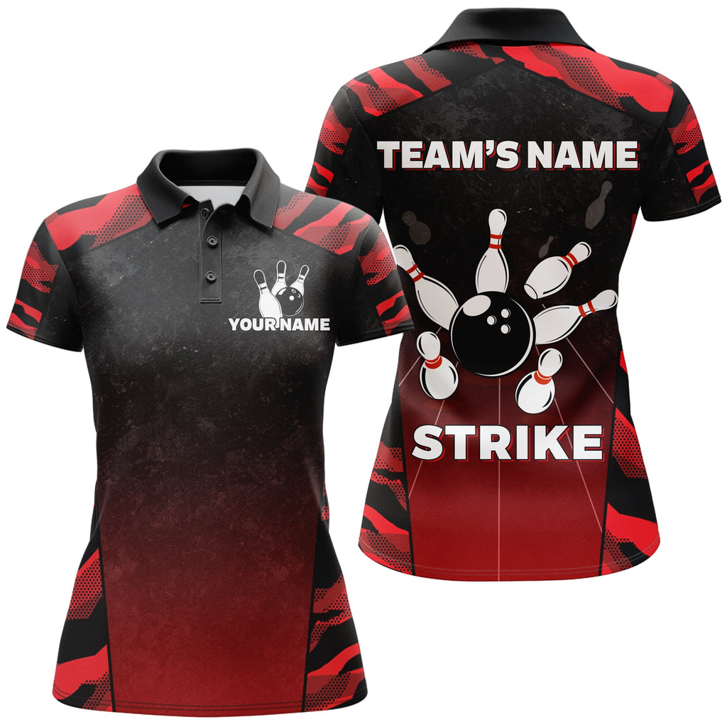 Camo Bowling Polo Shirt For Women Custom Name And Team Name Strike Bowling Short Sleeve Jerseys BDT06