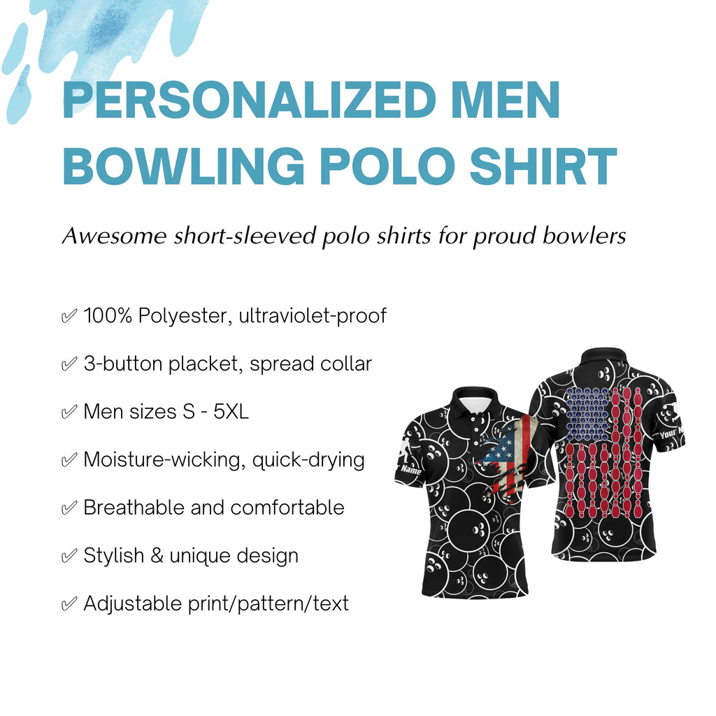 Custom American Flag Men Bowling Polo Shirt Black USA Bowling Short Sleeve Polo Men Bowlers NBP01