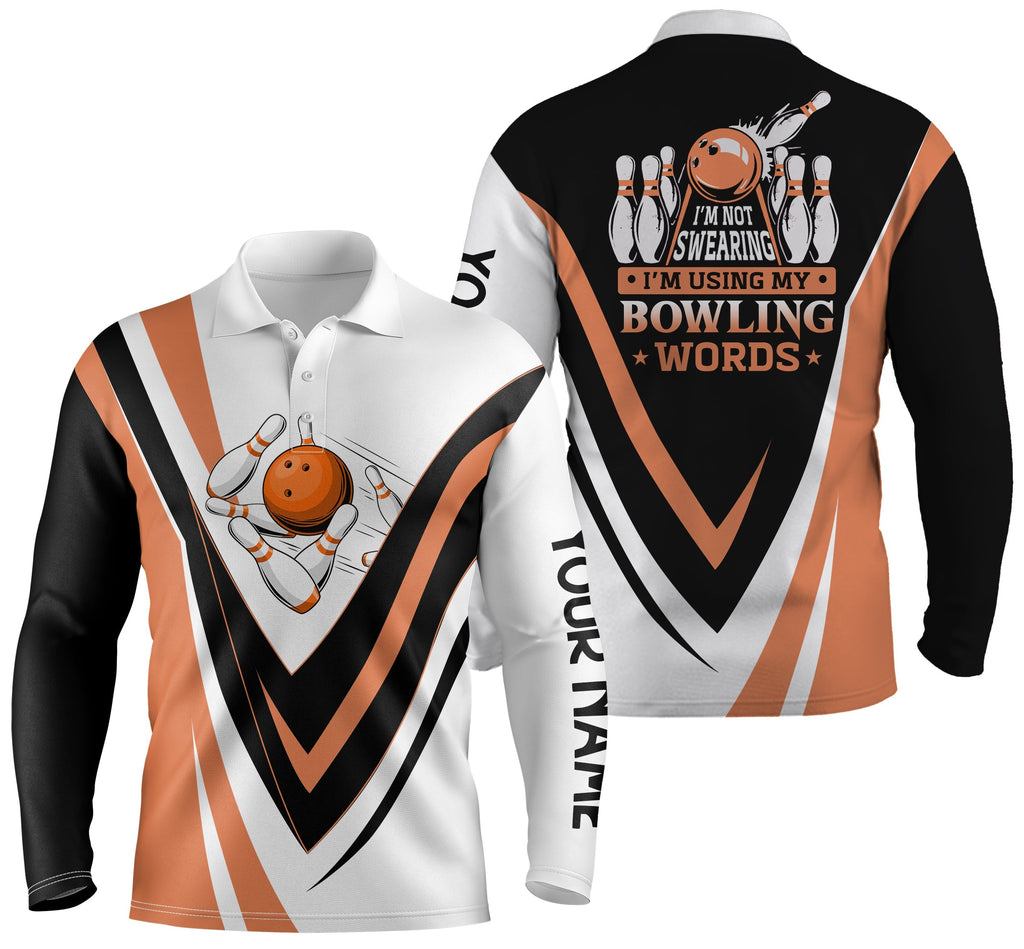 Custom bowling polo shirts I'm not swearing, I'm using my bowling words orange bowl shirts NQS4479