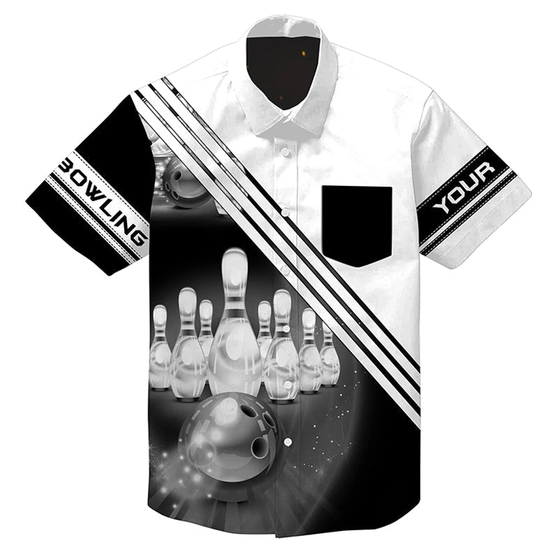 Custom hawaiian bowling shirts bowling ball and pins team shirt, button up bowling shirts | White NQS4452