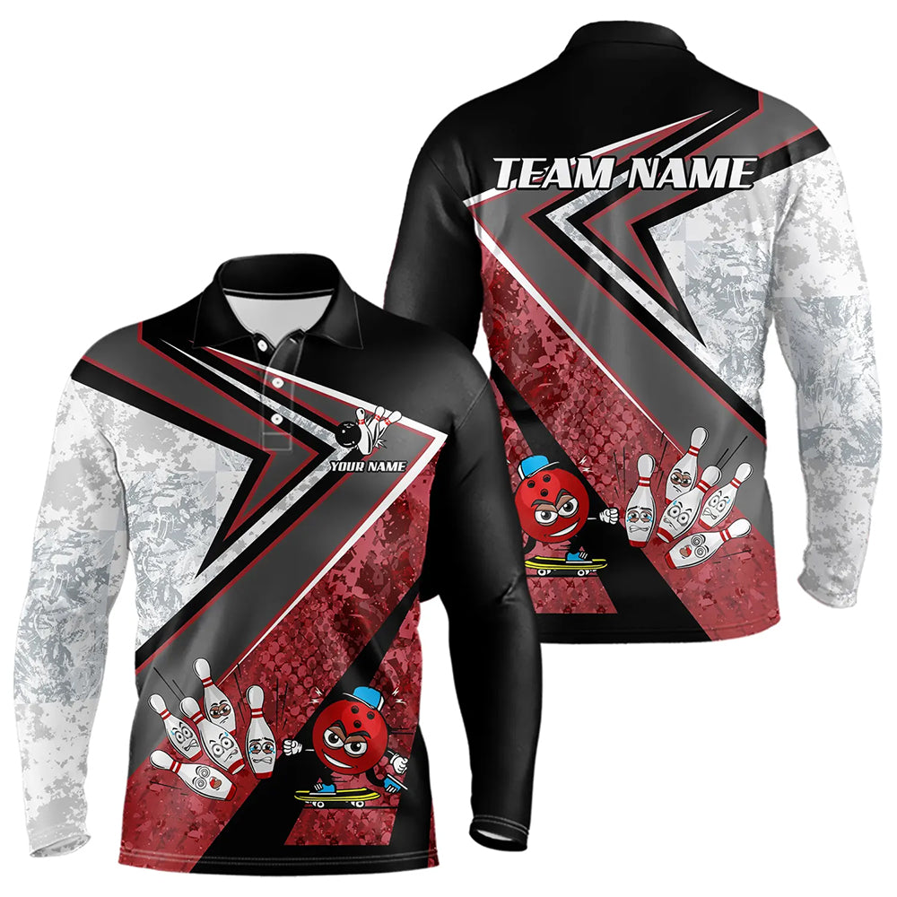 Funny Bowling ball and Pins Mens bowling shirt Custom Camo Bowling Team Jersey, gift for Bowler | Red NQS9604