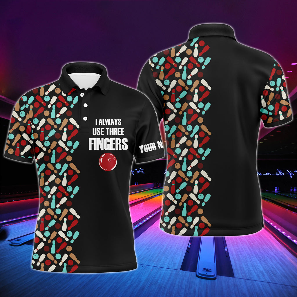 Funny Men Bowling Polo Shirt Personalized Short Sleeve Polo for Men Bowlers Aways Use Three Fingers NBP57