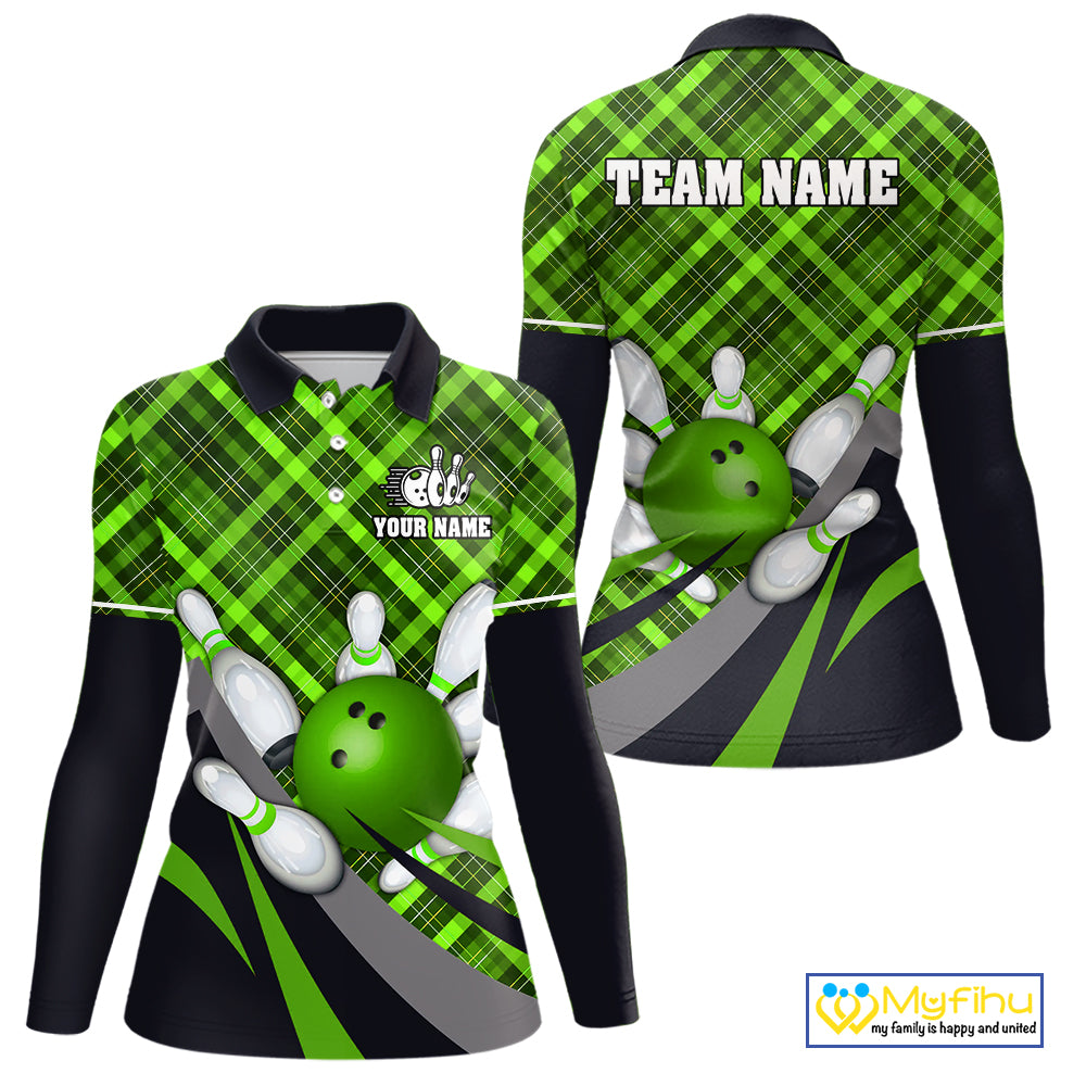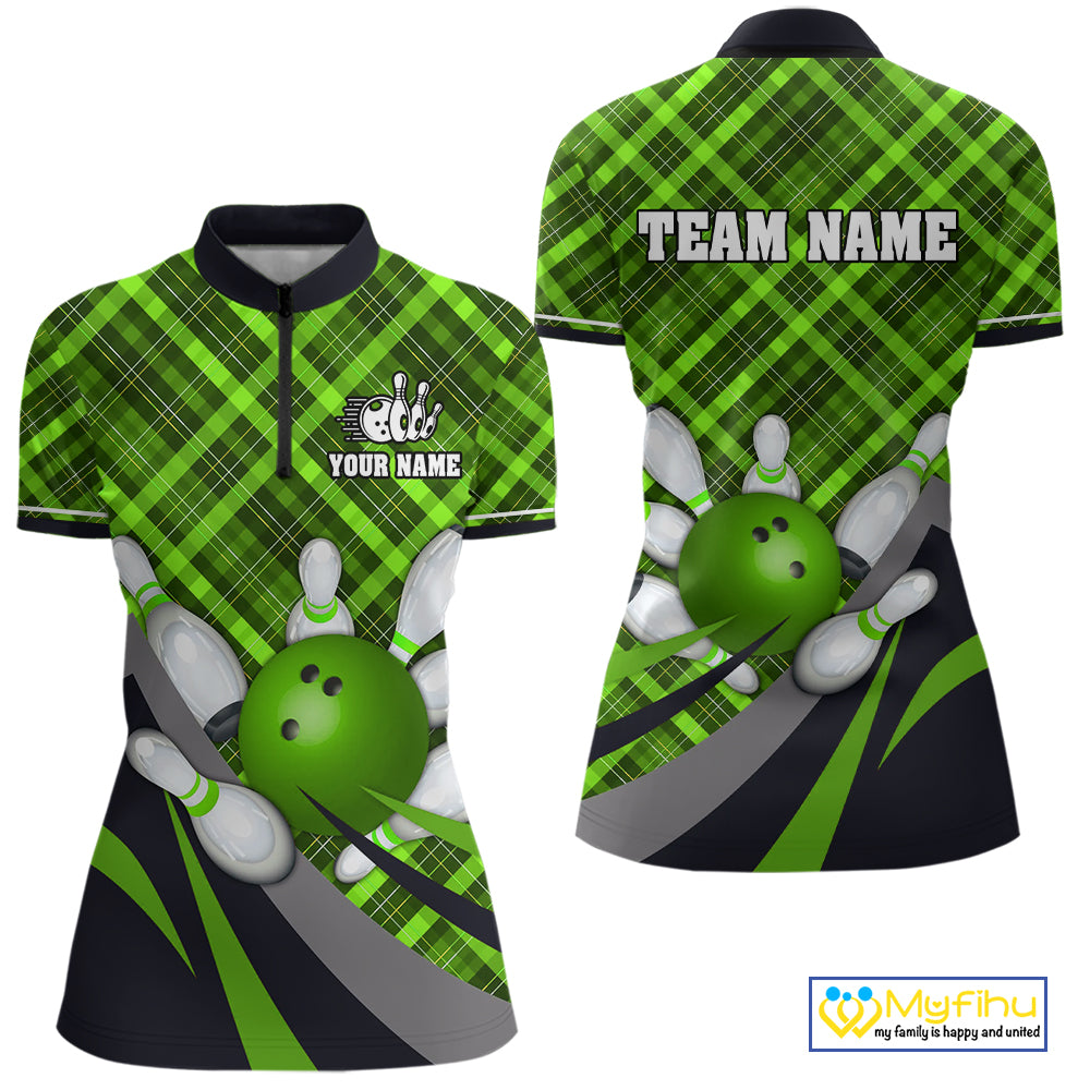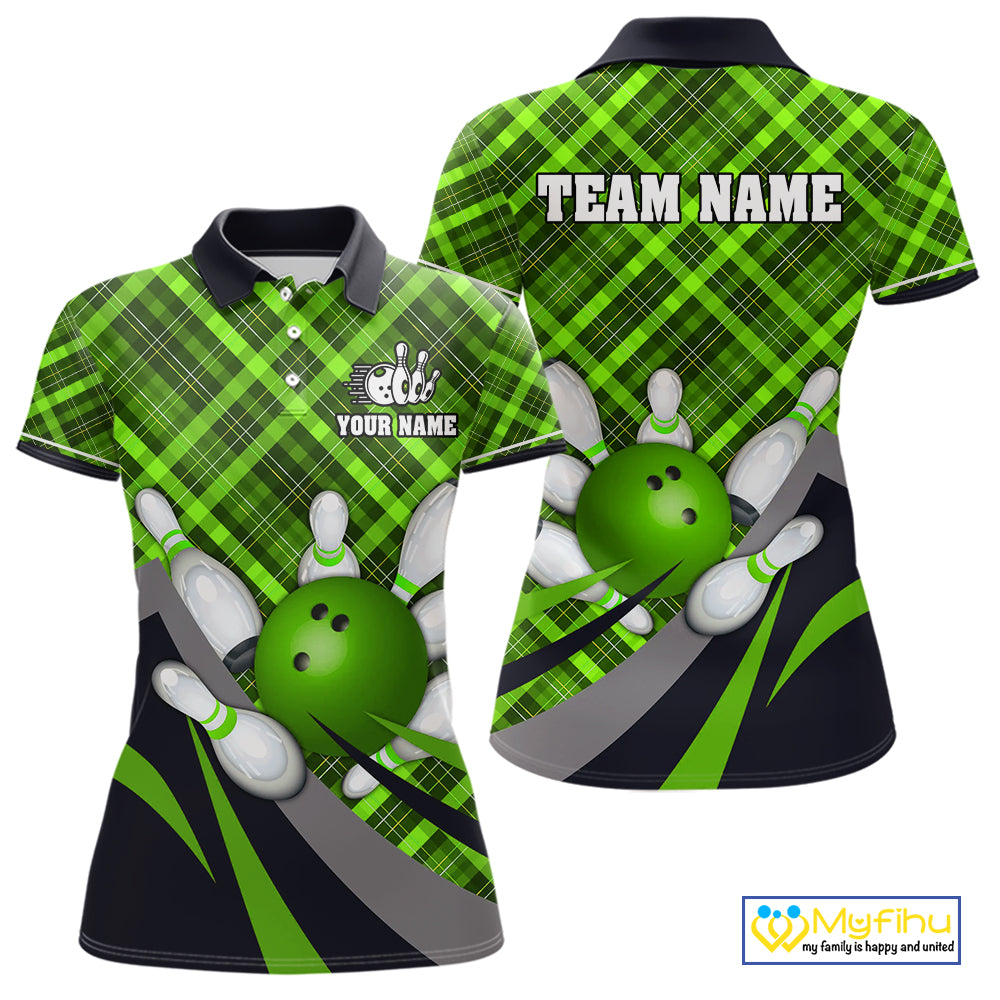 Green Plaid Christmas pattern Bowling shirt For Women Custom Team Bowling Jersey Xmas Gift For Bowler NQS10492