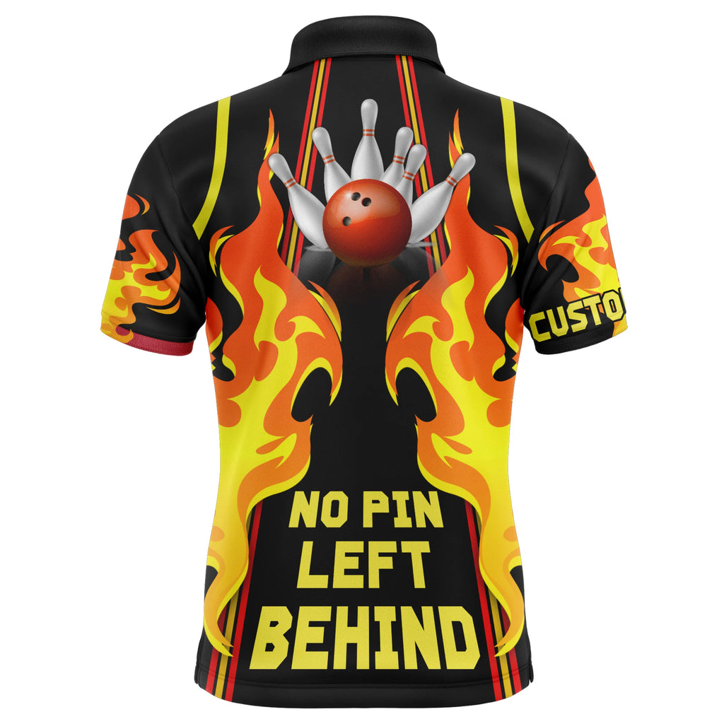 No Pin Left Behind Personalized Men Bowling Polo Shirt, Cool Flame Bowler Jersey NBP26