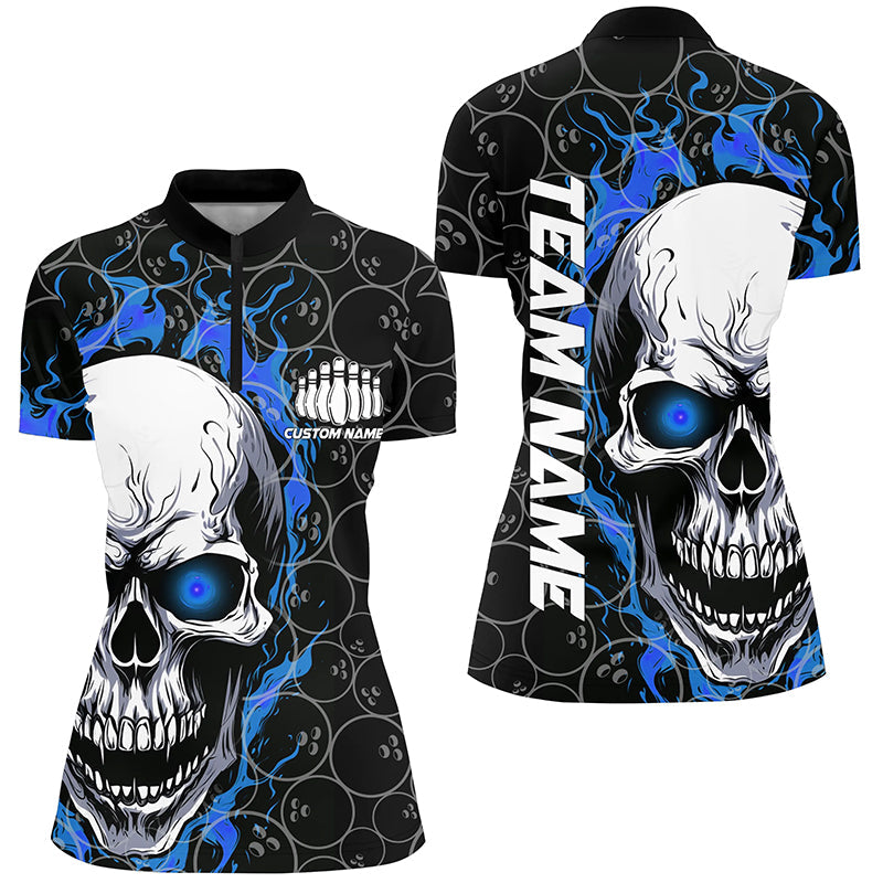 Personalized Skull Bowling Shirt For Women Custom Team'S Name Flame Bowler Jerseys | Blue IPHW5103