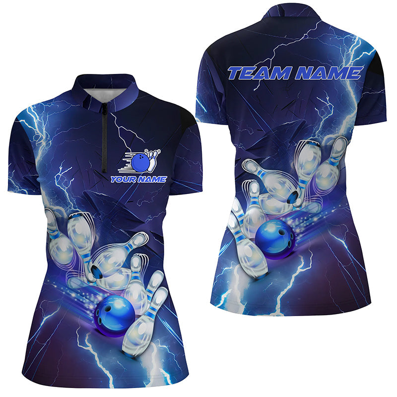 Blue Lightning Thunder Custom Bowling Team Jersey,Team Bowling Shirts For Women IPHW5152