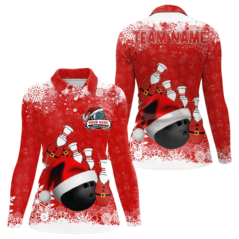 Womens bowling polo shirts Custom Christmas snowflake bowling ball Bowling Team league Jersey NQS6806