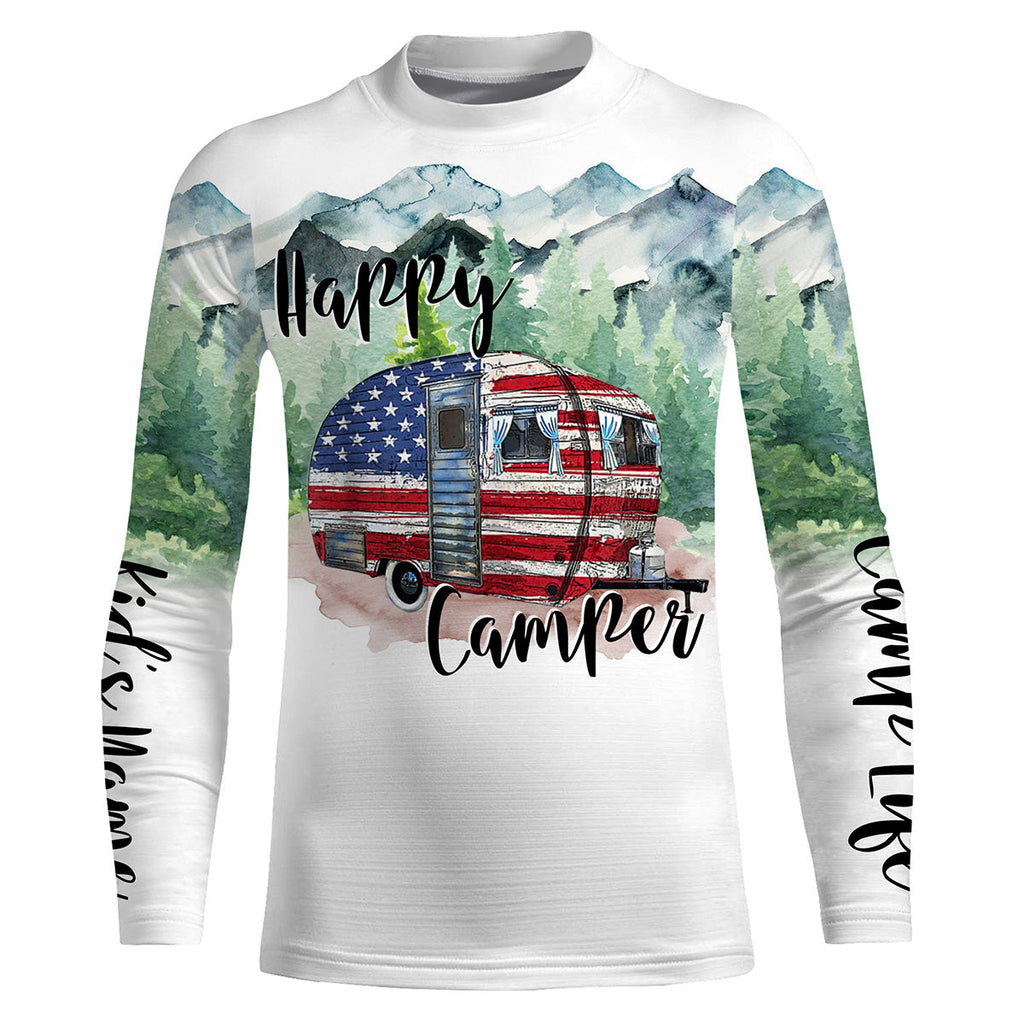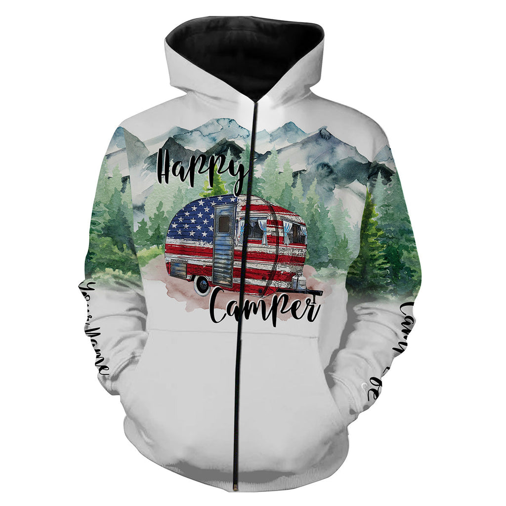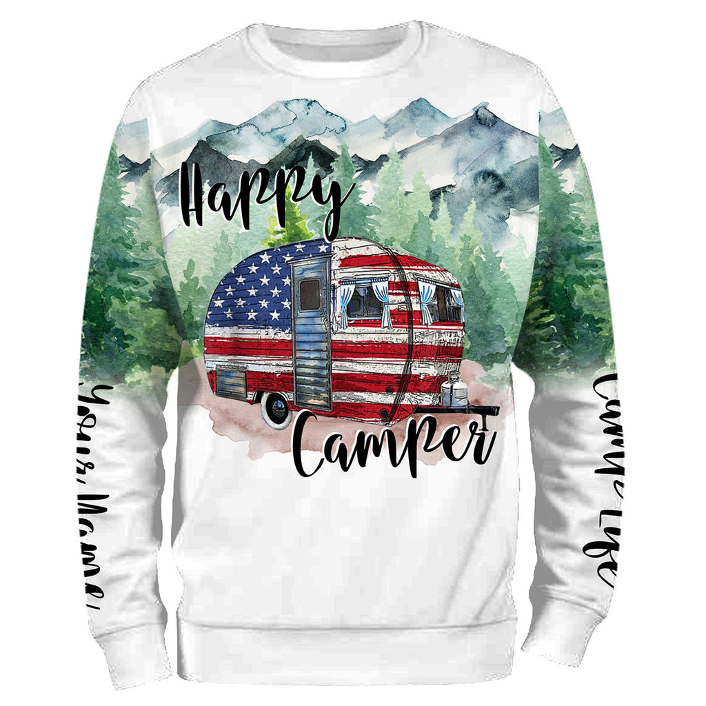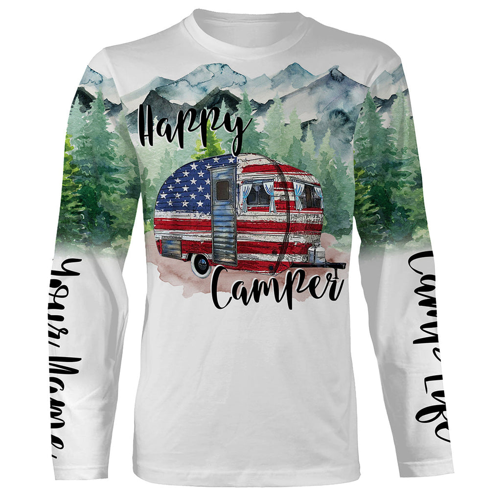 Happy camper cabin van US flag camping life shirt personalized name