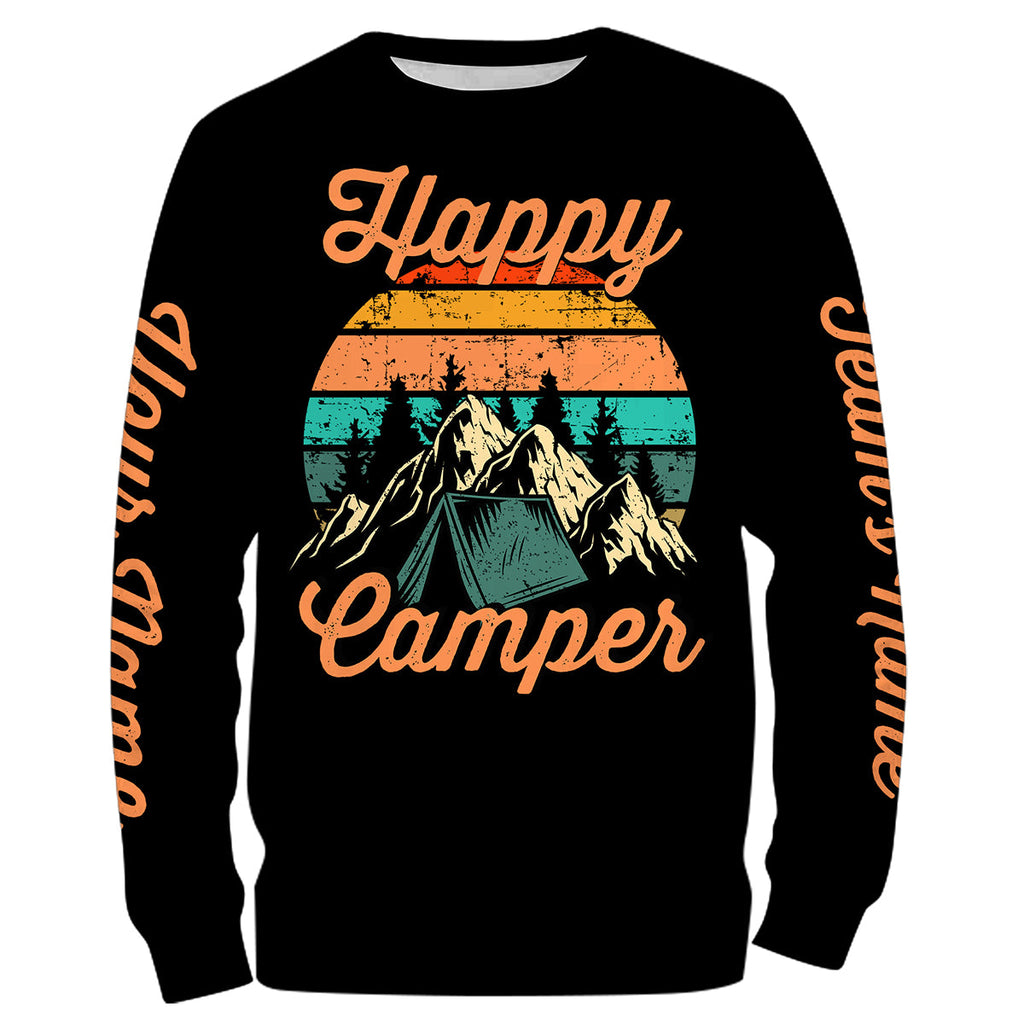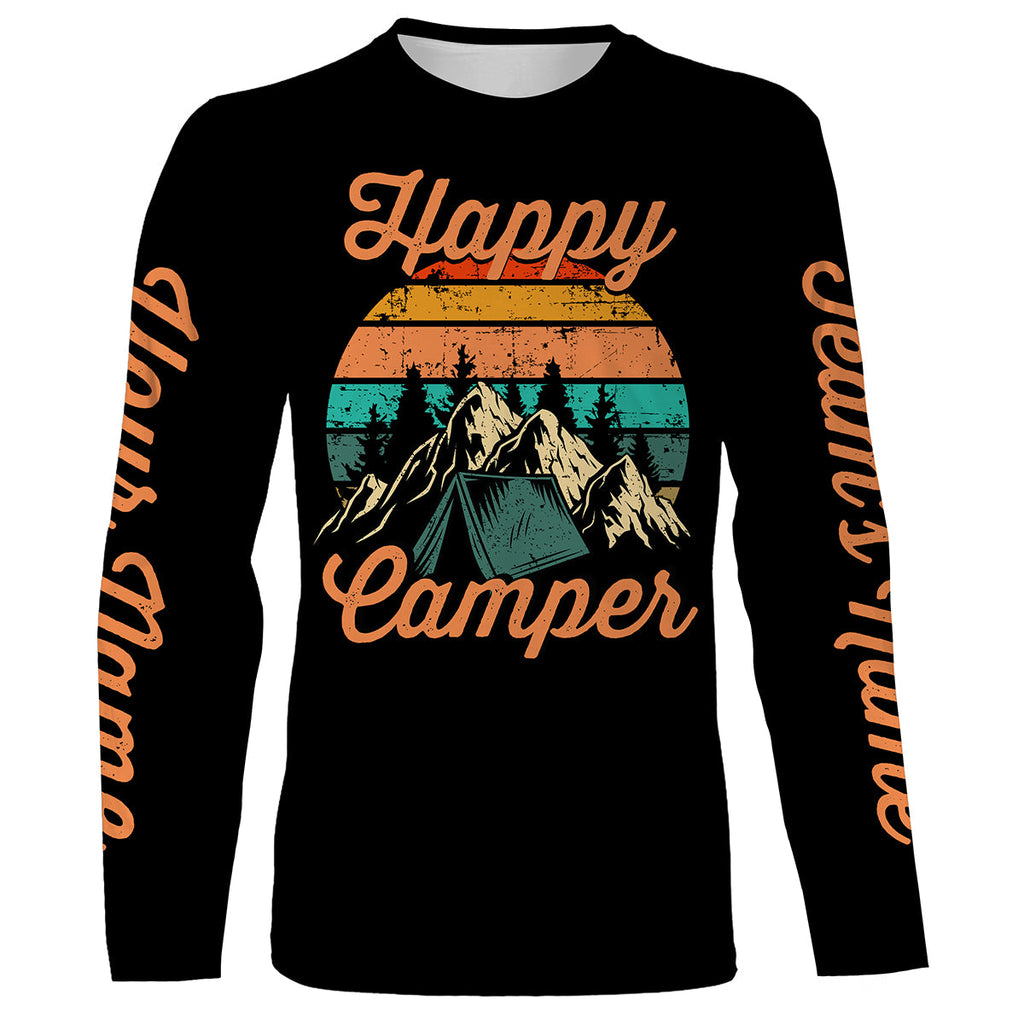 Happy camper camping shirt funny cute personalized long sleeve custom name and team's name