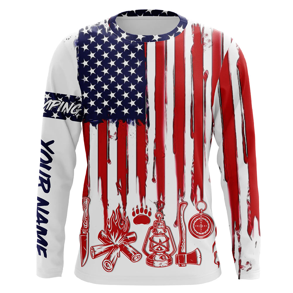 Personalized Funny Camping American Flag UV protection Custom Long Sleeve Shirts TTN128