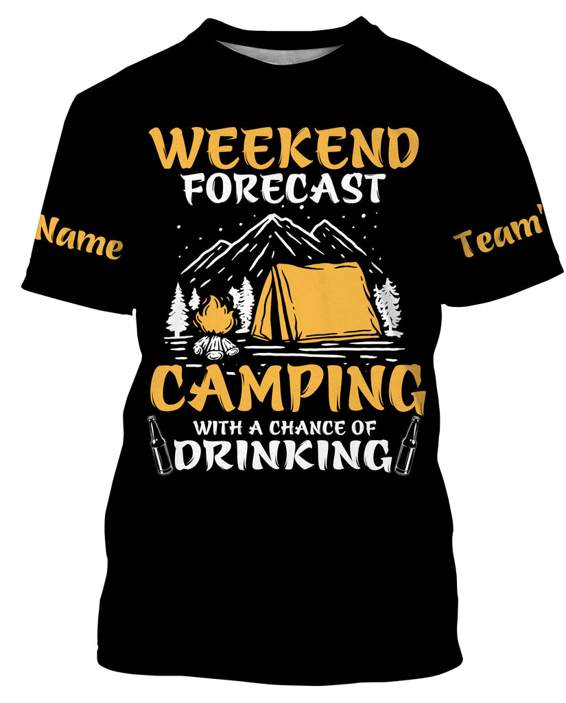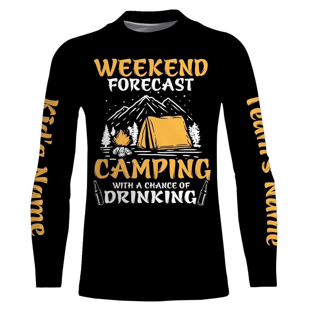 Weekend forecast camping with a chance of drinking T-Shirt personalized long sleeve custom name and team name