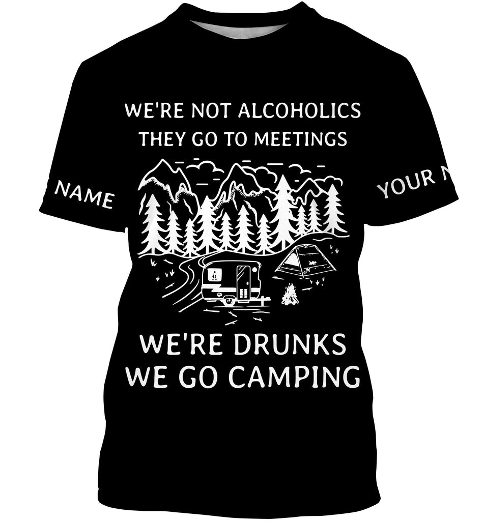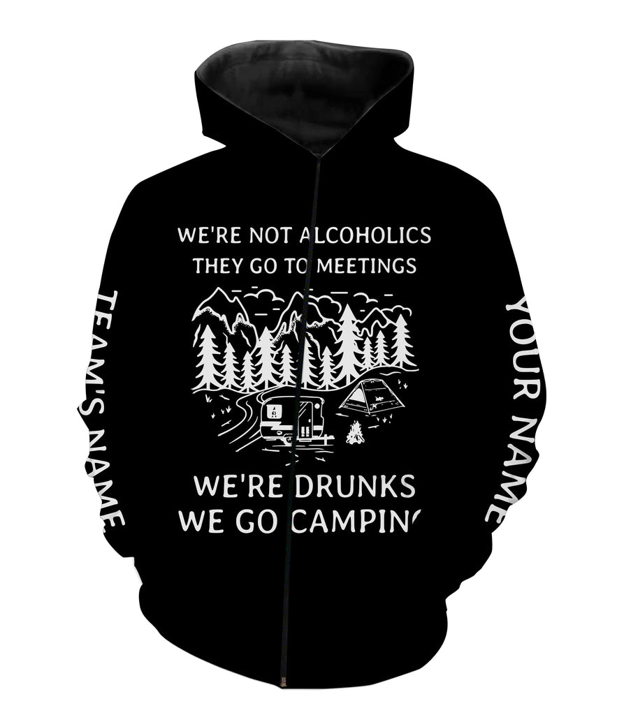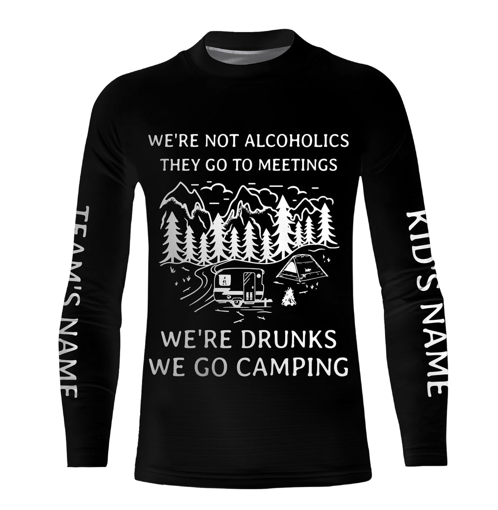 We're not alcoholics they go to meetings we're drunks we go camping shirt personalized long sleeve custom name