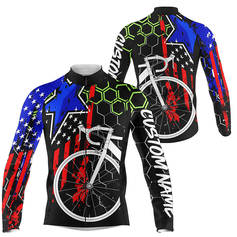 American Mens cycling jersey UPF50+ Custom name USA bike shirts with 3-rear pockets & full zip| SLC209