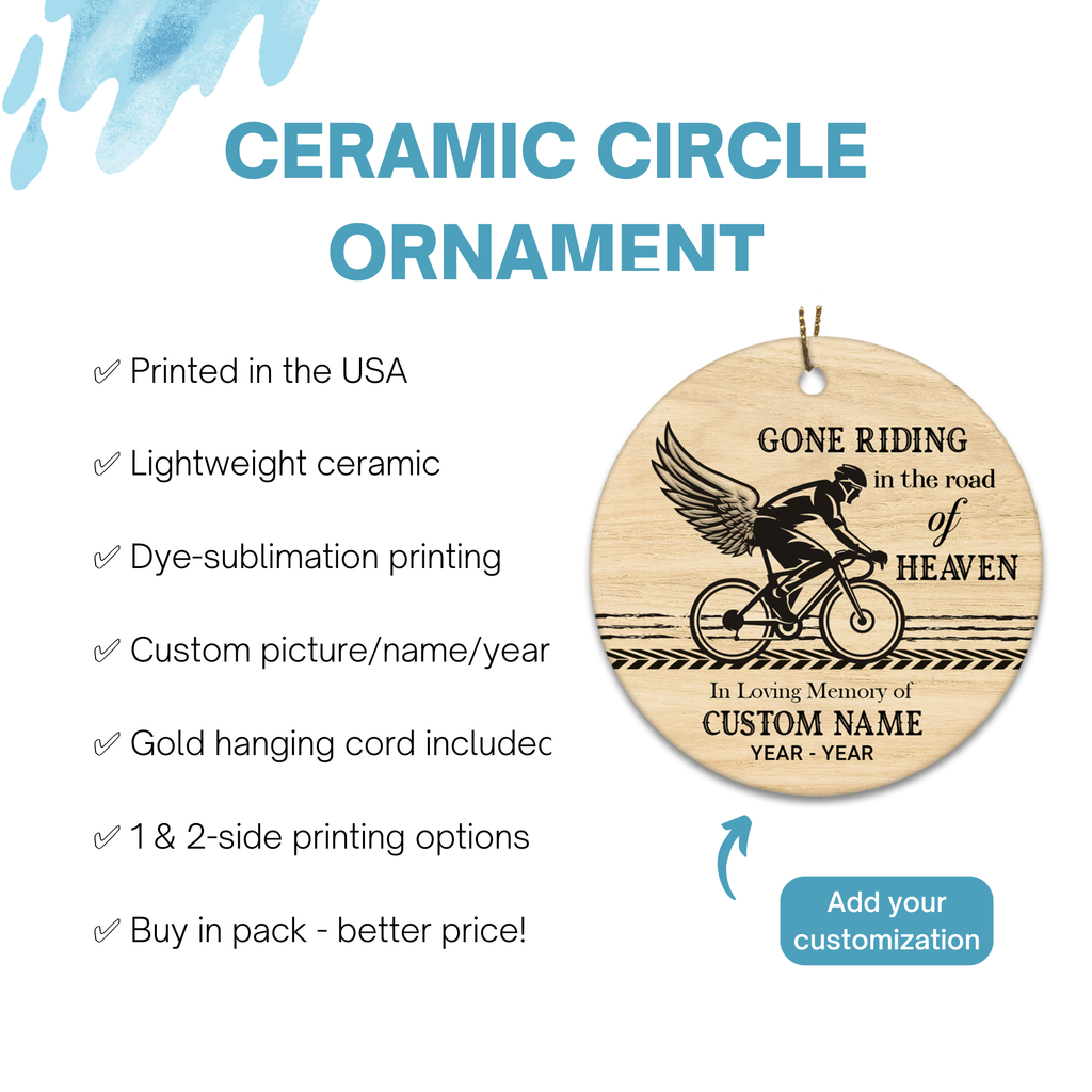 Gone riding in heaven - cyclist memorial ornament, mountain biker Xmas gift, BMX cycling ornament| ONT15