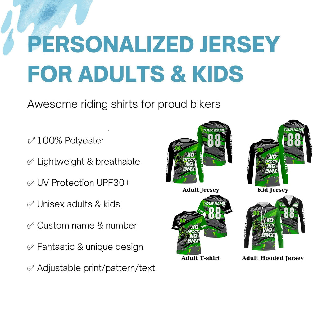 Green BMX racing jersey Custom lightweight UPF30+ sun shirt youth adult Cycling motocross racewear| SLC111