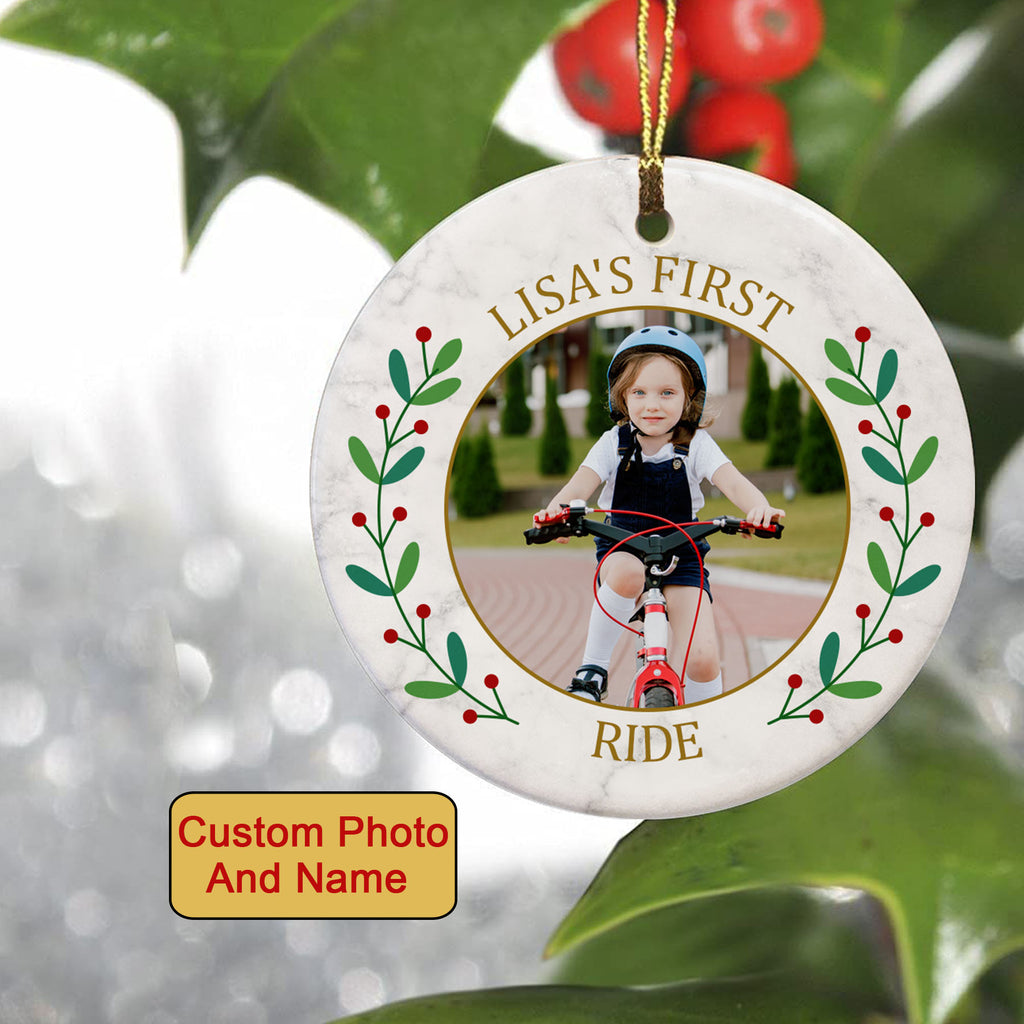 Kid's first ride bicycle ornament, riding cycling ornament, personalized biking gifts for Xmas 2022| ONT35