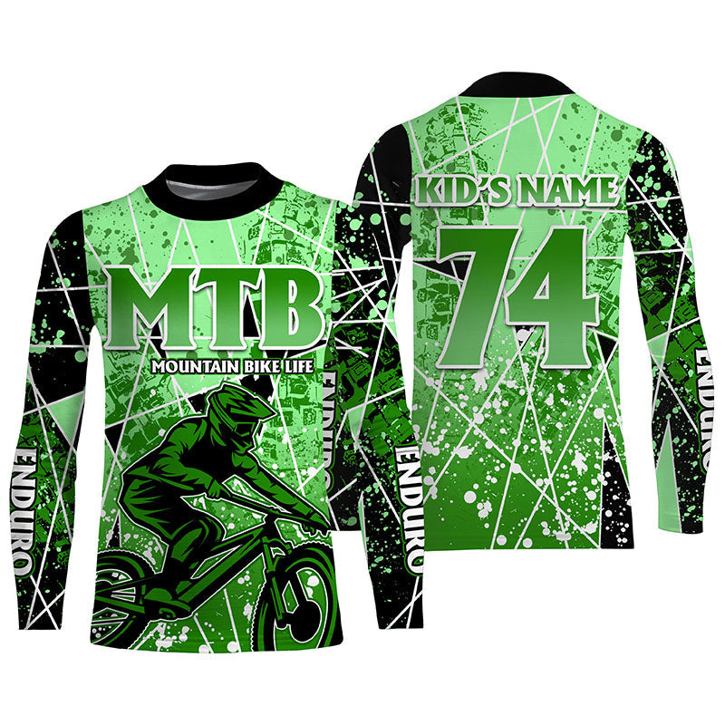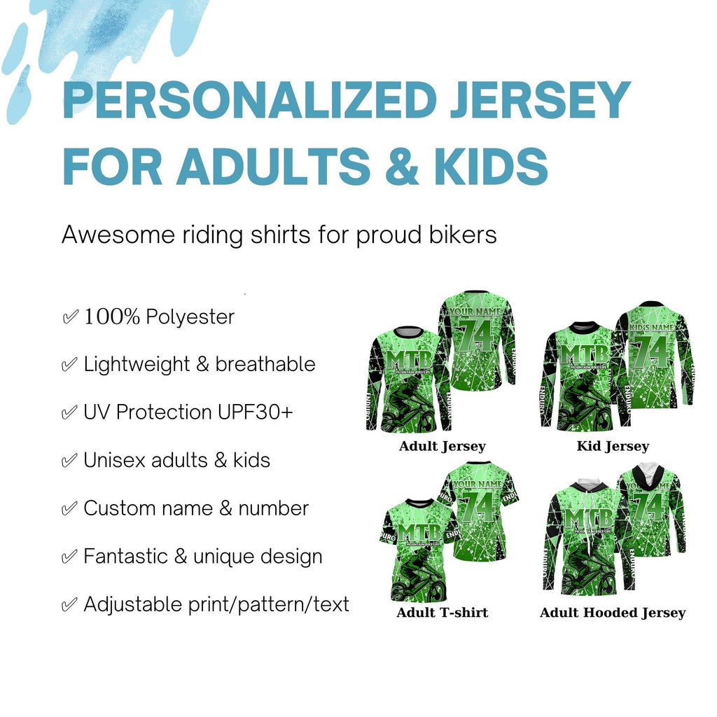 MTB life Personalized adult kid MTB jersey UPF30+ Green mountain bike gear Cycling downhill shirt| SLC226
