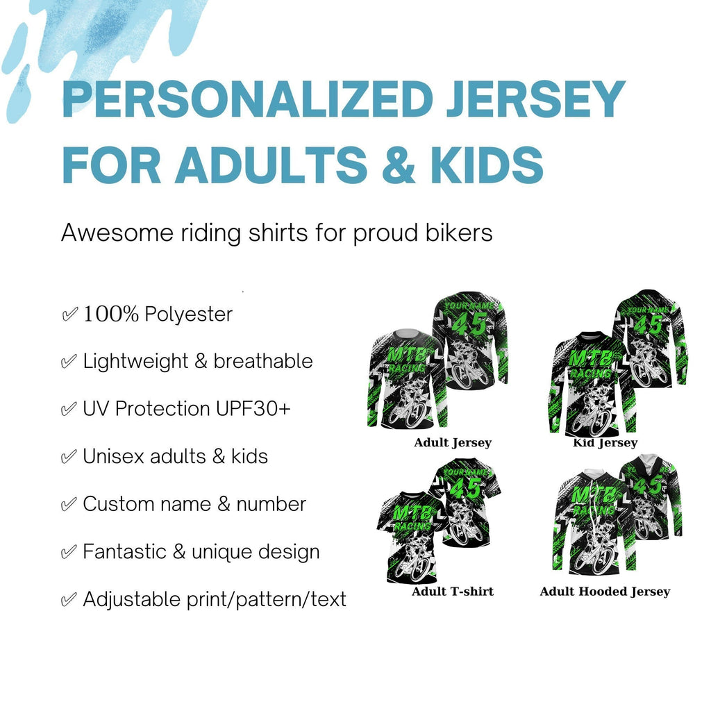 MTB riding jersey adult kids UPF30+ green mountain bike downhill cycling shirt for boys girls| SLC245