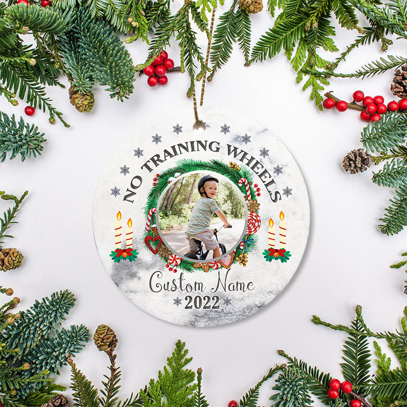 No training wheels Xmas ornament for kids, personalized biking ornament, cycling gift boys girls| ONT85