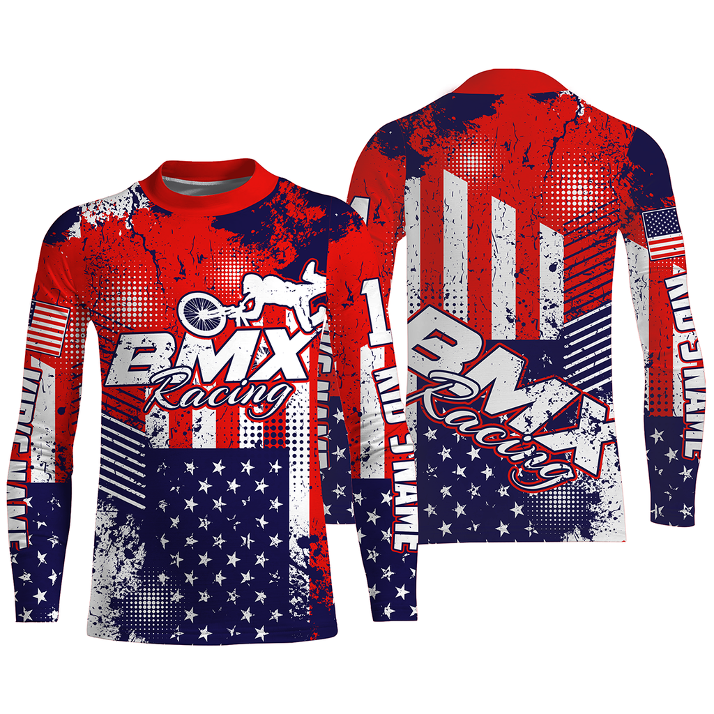 Patriotic BMX racing jersey personalized UPF30+ American rider shirt US off-road Cycling adult&kid| SLC15