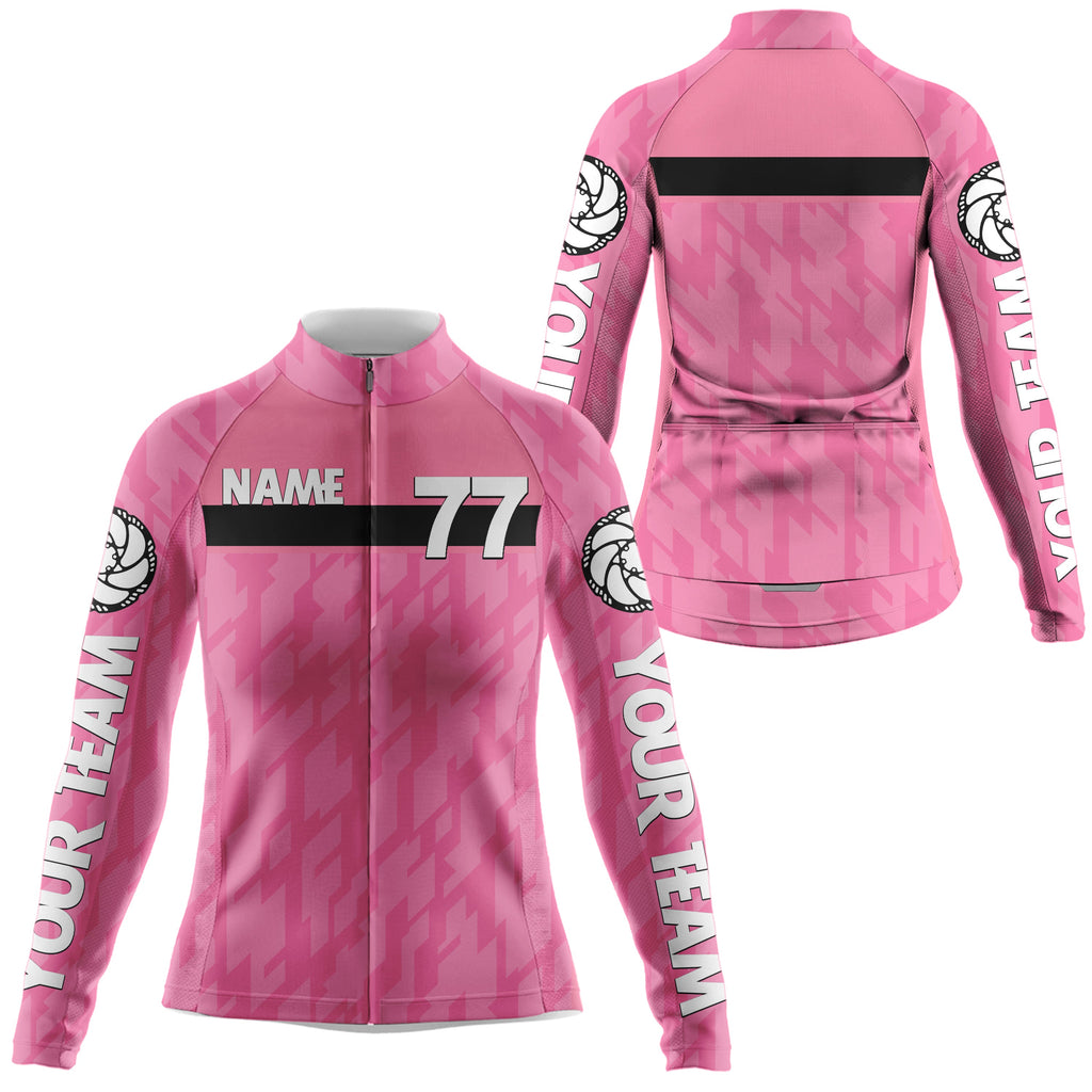 Pink women cycling jersey Camo cycle gear with pockets Anti-UV reflective long short sleeve shirt| SLC122