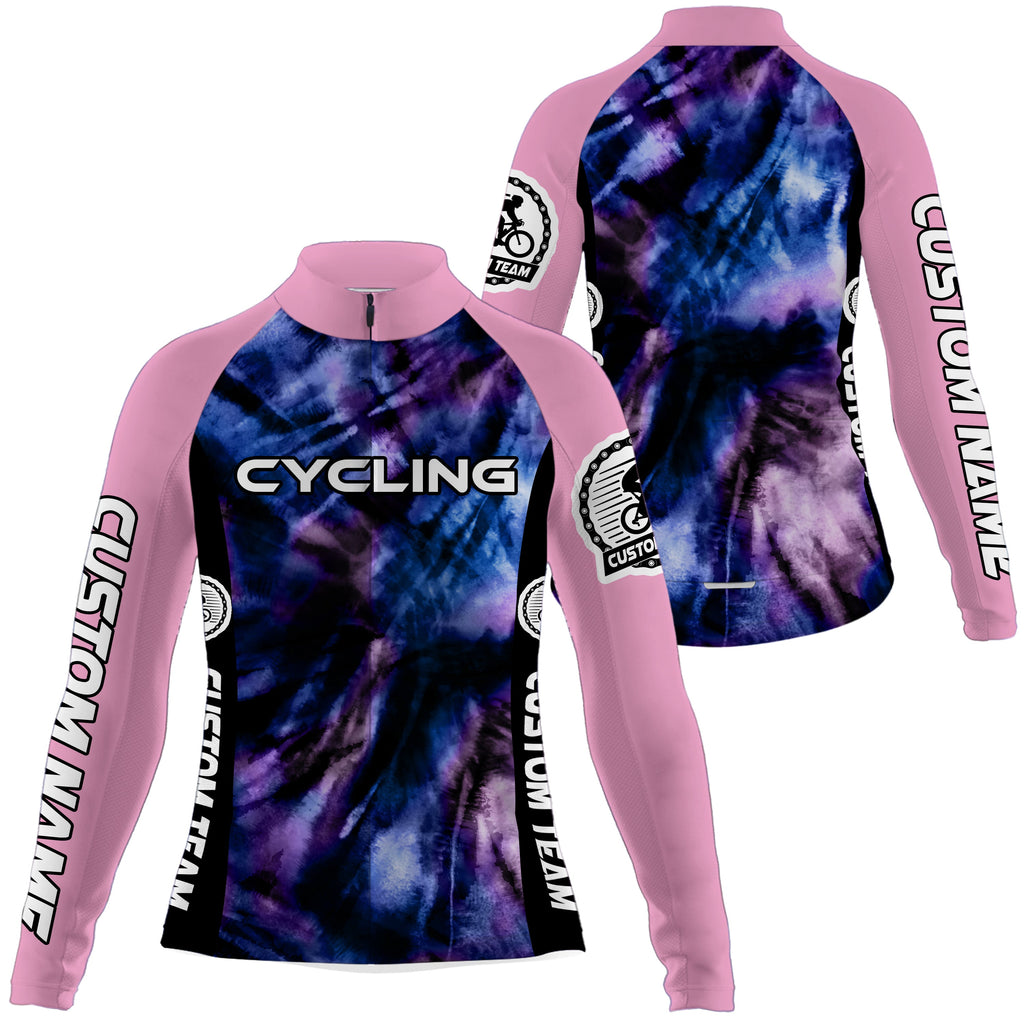 Tie Dye women cycling jersey with 3 pockets Anti-UV reflective shirt Cycle long short sleeve Gear| SLC125