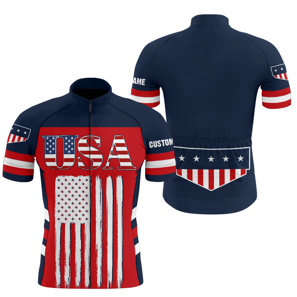 USA Men & Women cycling jersey UPF50+ American bike shirt with 3 pockets & full zip MTB BMX Gear| SLC164