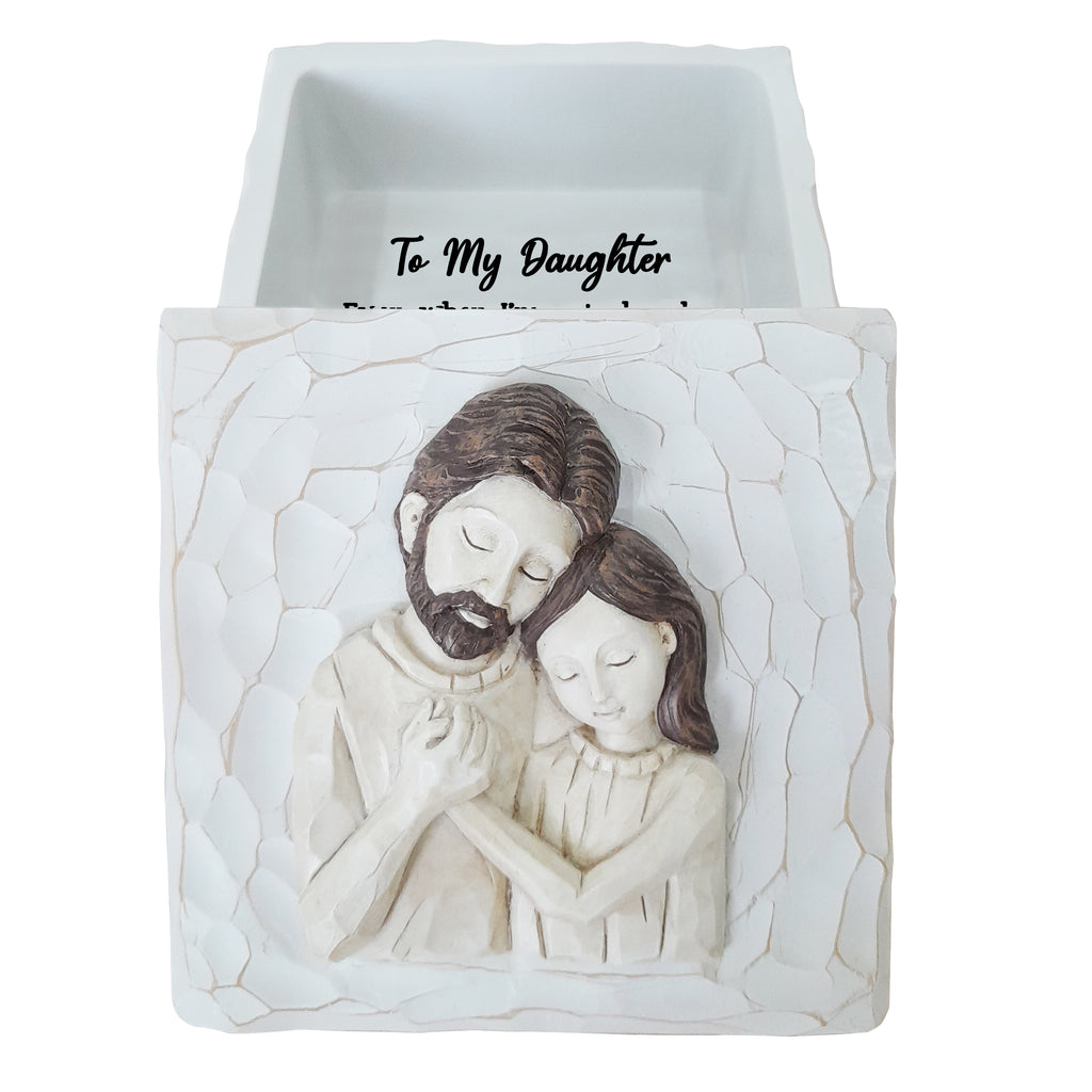Celebrate the bond of father and daughter with this keepsake box. Crafted with care, this elegant 4.5x4.5x2.5 inch box is made from durable polyresin and adorned with intricate hand-painted details. It's more than just a box; it's a symbol of cherished memories, love, and the unbreakable connection between a father and his daughter.