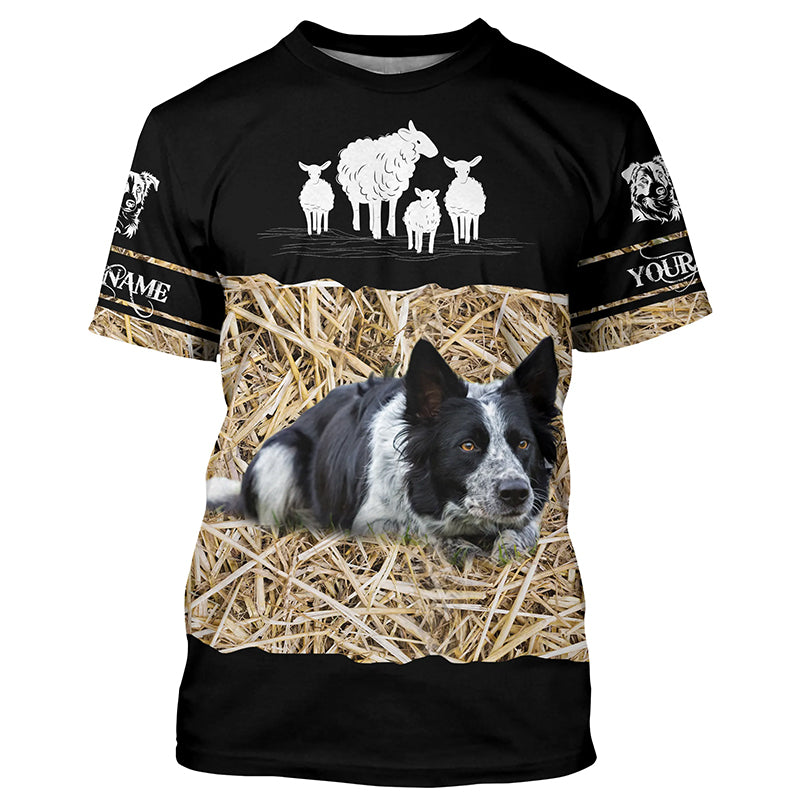 Border Collie herding sheep Dog custom Name all over print Hoodie Long sleeve T-shirt FSD4646