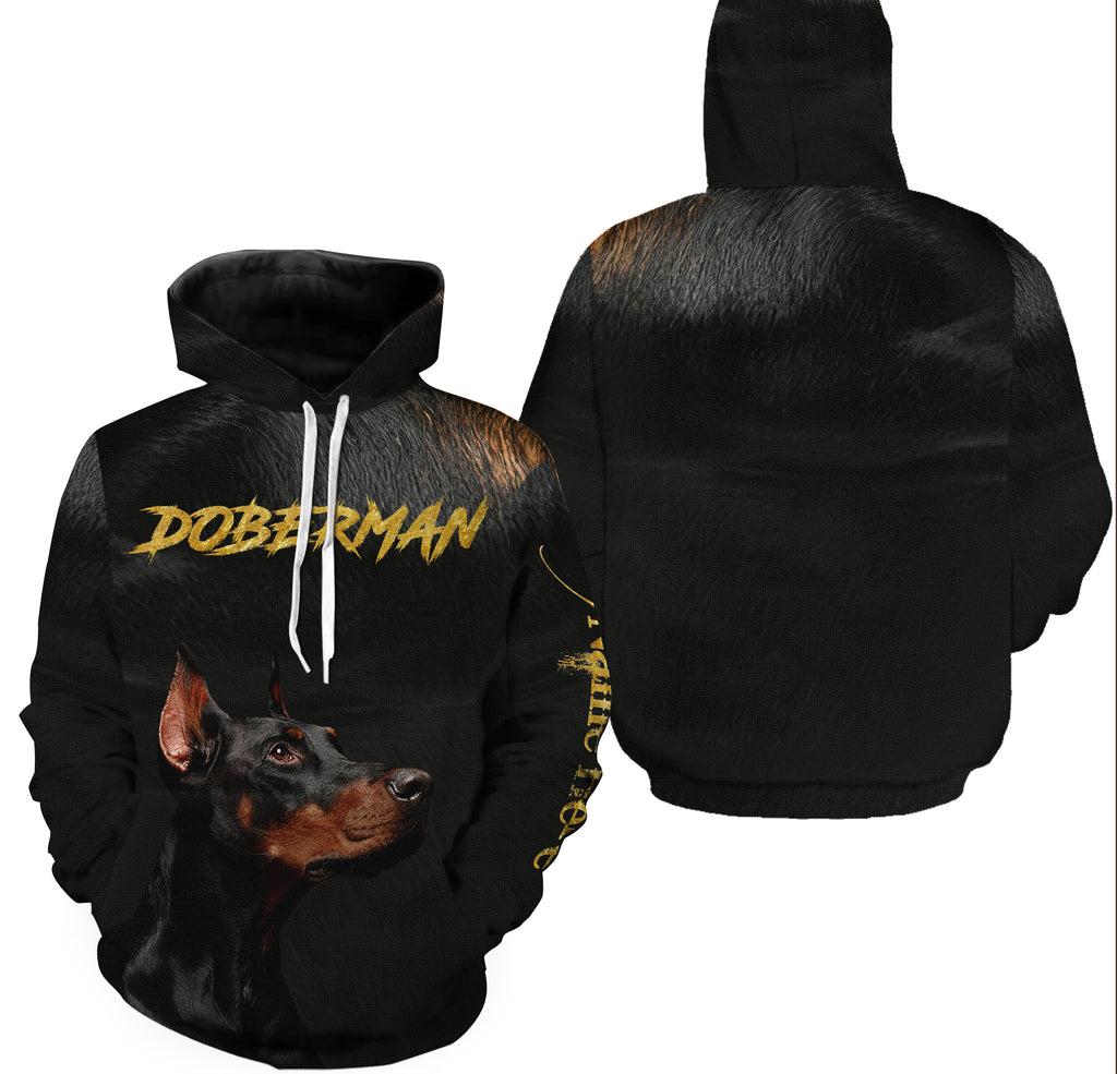 Cool Doberman Dog Unisex Hoodie Long Sleeve| Custom Name Doberman Shirt for Him Her| JTSD273
